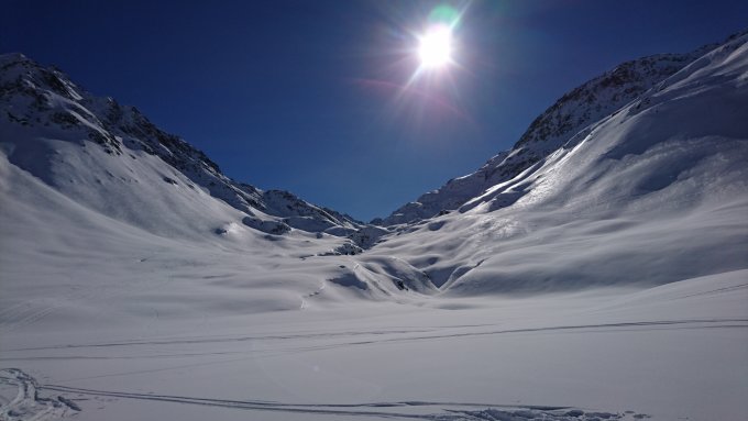 Ostabfahrt vom Weisshorn, weiter auf den Rosställispitz. Culoir runter und über Isenfürggli nach Tschechen zurück. Abfahrten erstaunlich gut. Pulvrig kompakt, hart, sulzig, alles da.