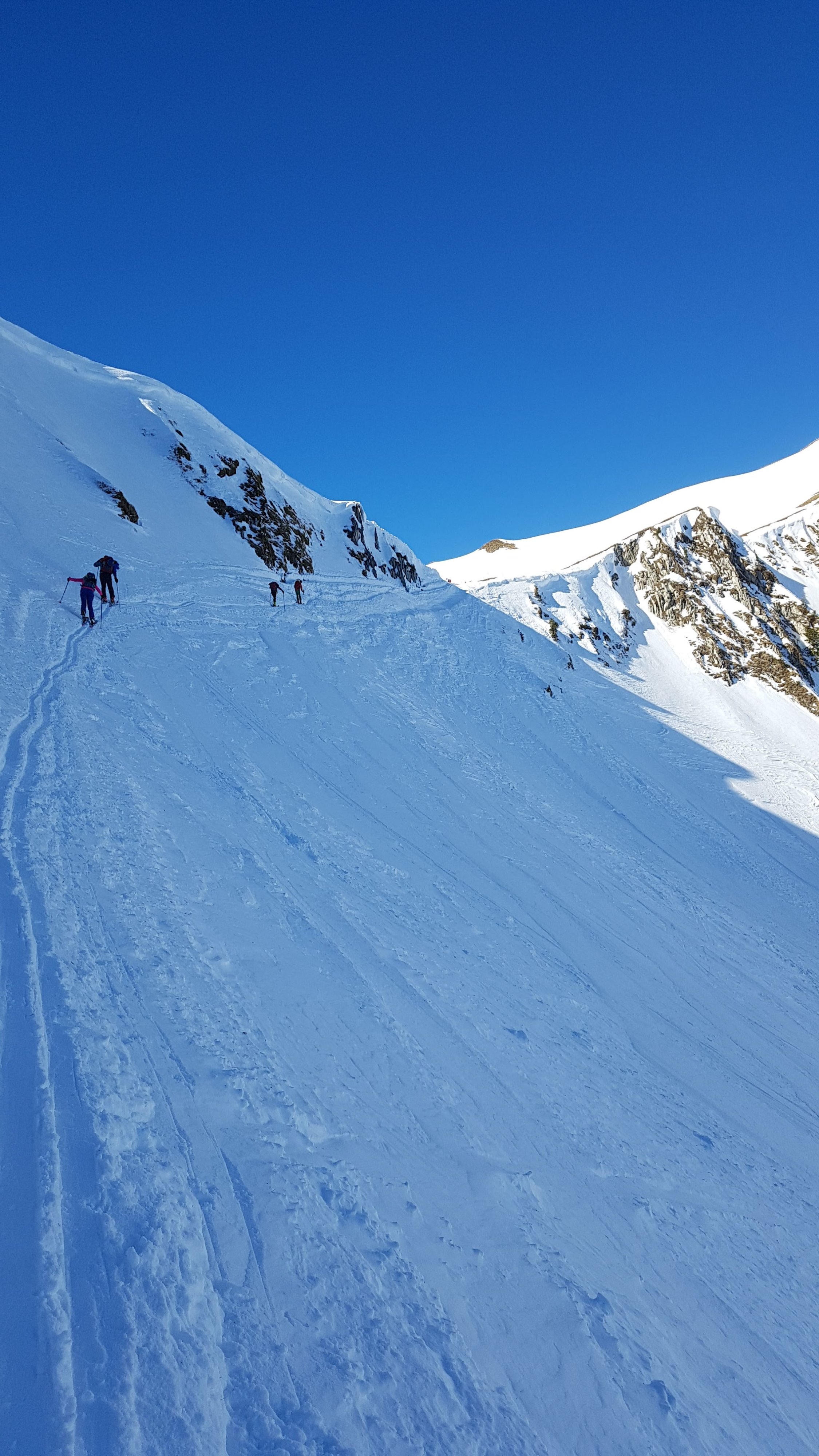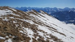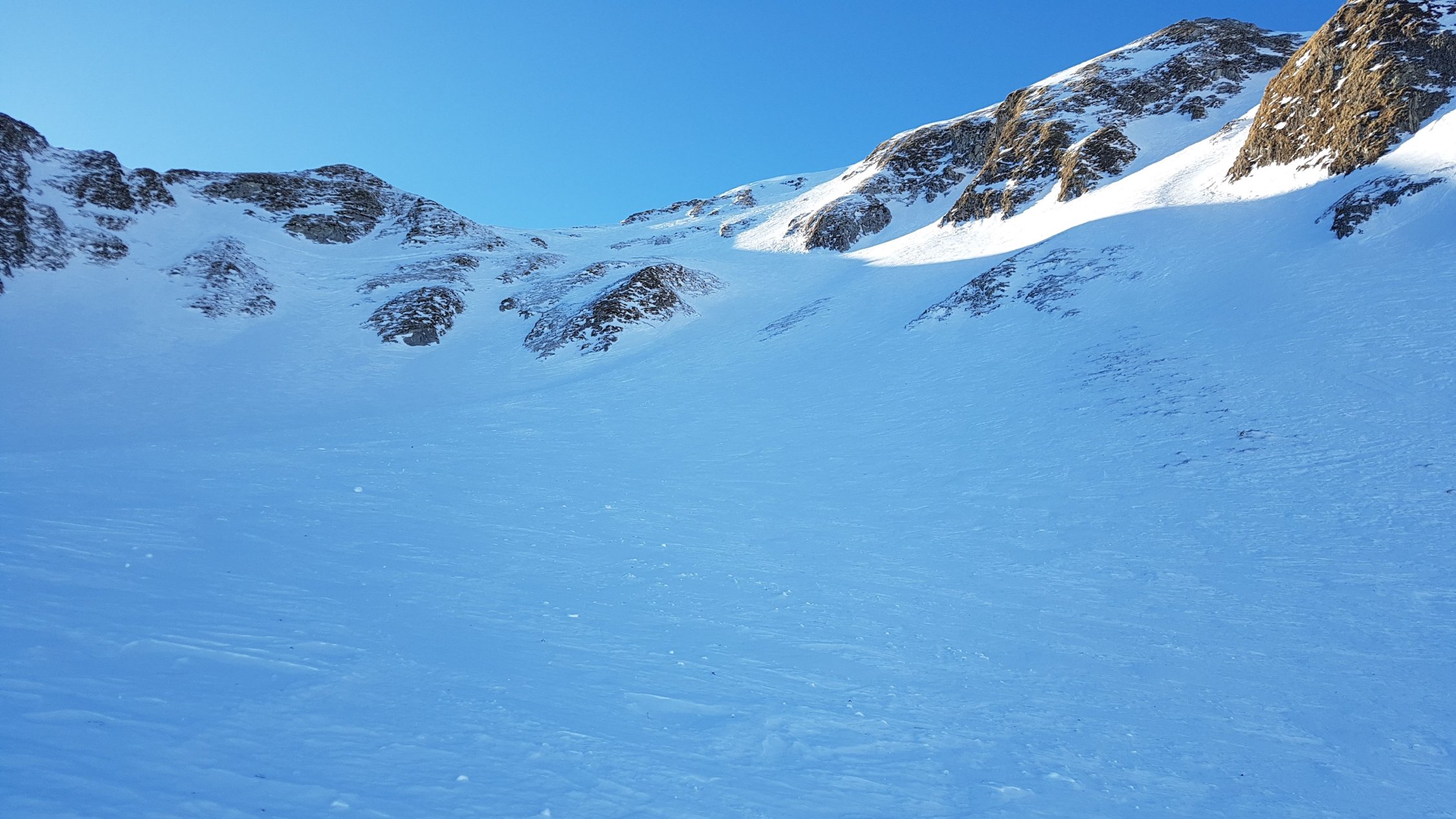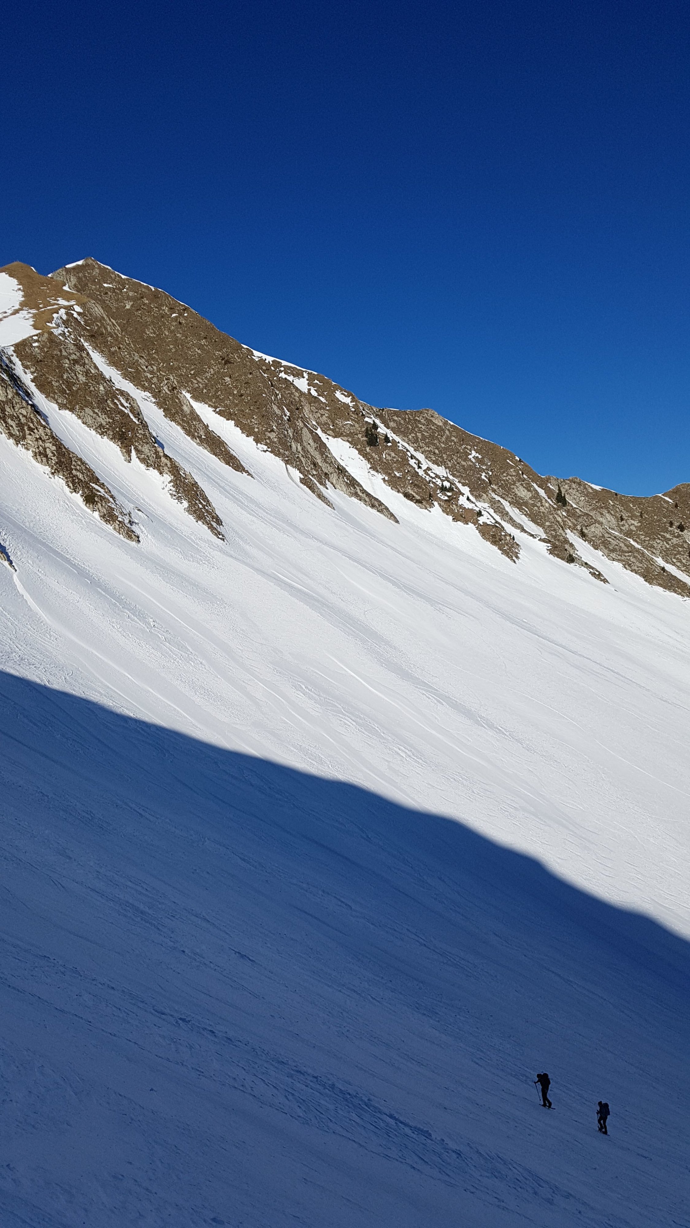 Am Morgen harter Schnee bis zum Morgetenpass (welcher einfach zu begehen ist); im Aufstieg zum Gipfel sulzig. An einigen wenigen Stellen kommt das Gras schon deutlich zum Vorschein. Das Nordcouloir ist so verfahren, dass es schon wieder Spass macht, dort hinunterzufahren (harter, gepresster Pulver)