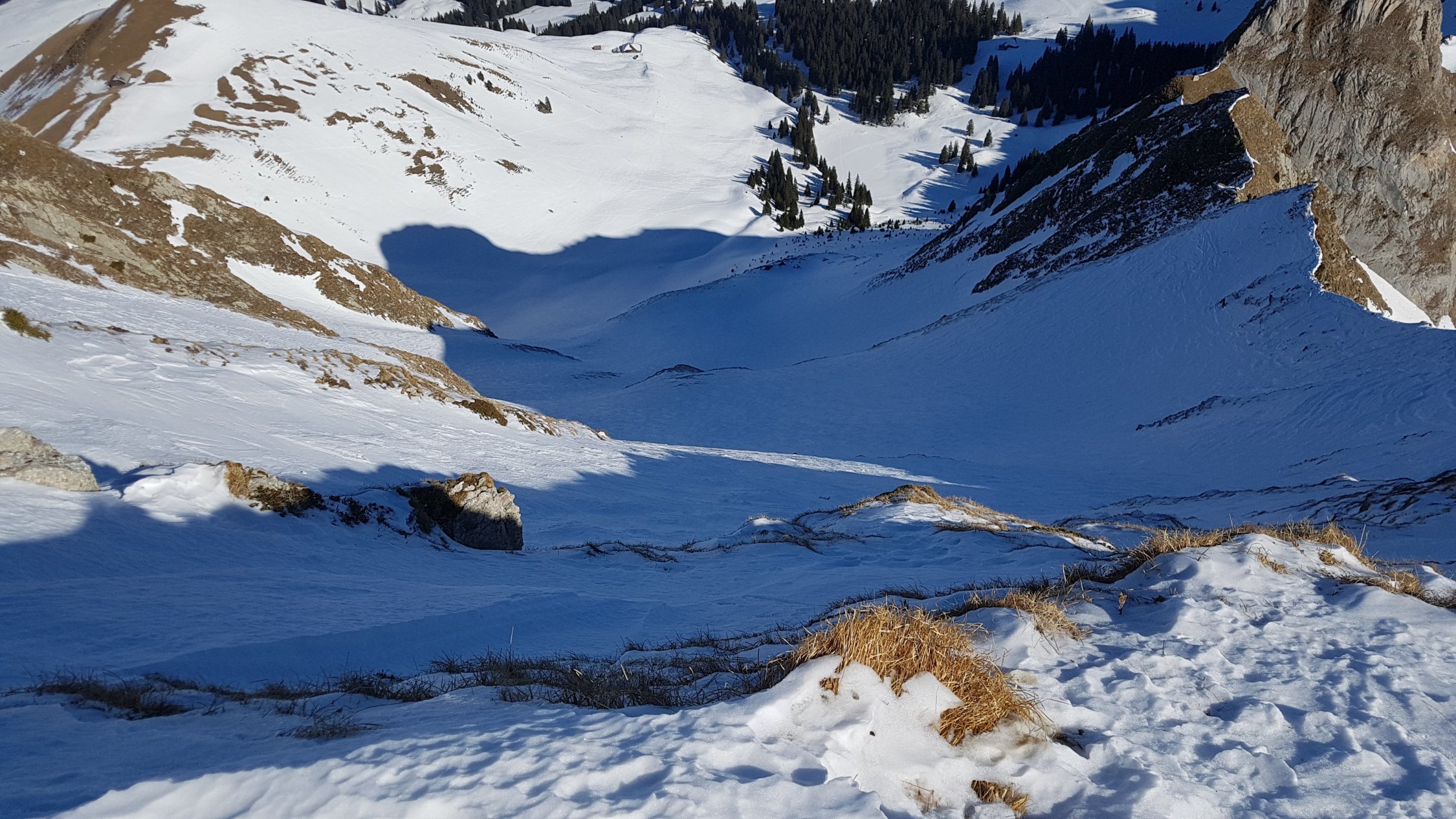 Mit dem angesagten Wetter werden die aperen, der Sonne zugewandten Stellen immer grösser. In den Schattenhängen liegt allerdings noch mehr als genügend Schnee.