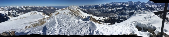 Aufstieg griffig und ohne Harsteisen zu gehen. Der Wanderweg wurde an einer Stelle von einer Loui verschüttet. Geht aber gut für das Travesieren. Gipfelaufschwung wenig Schnee.