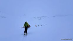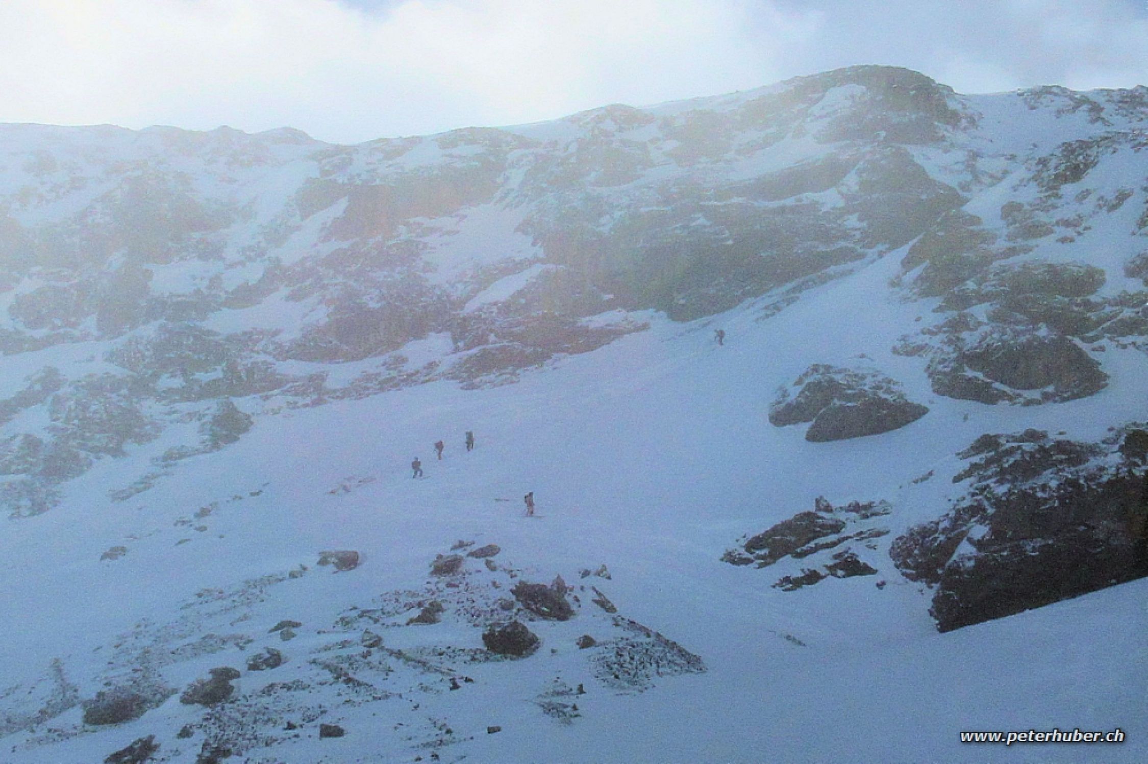 Aufstieg ab der Claridenhütte zum Gemsfairenjoch. Im Nebel eine ziemliche Navigationsübung. Der steile Aufstieg zum Gemfsfairenjoch war mühsam da der Neuschnee auf der harten Unterlage oft abrutschte. Wir durften die erste Spur legen - danke an alle, die mitgeholfen haben.