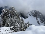 Aper bis Ramsere, durchgehend Schnee ab Nüschlete. Sehr weich, etwa 5-10 cm Neuschnee. Ab 1700 m mit SS bis zum Gipfel, Abstieg zu Fuss, Steigeisen nicht benötigt. Ostcouloir recht schön, trotz dem nassen Schnee - hier recht rutschfreudig, viele Schneecken