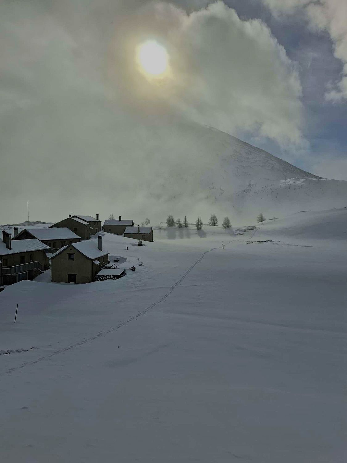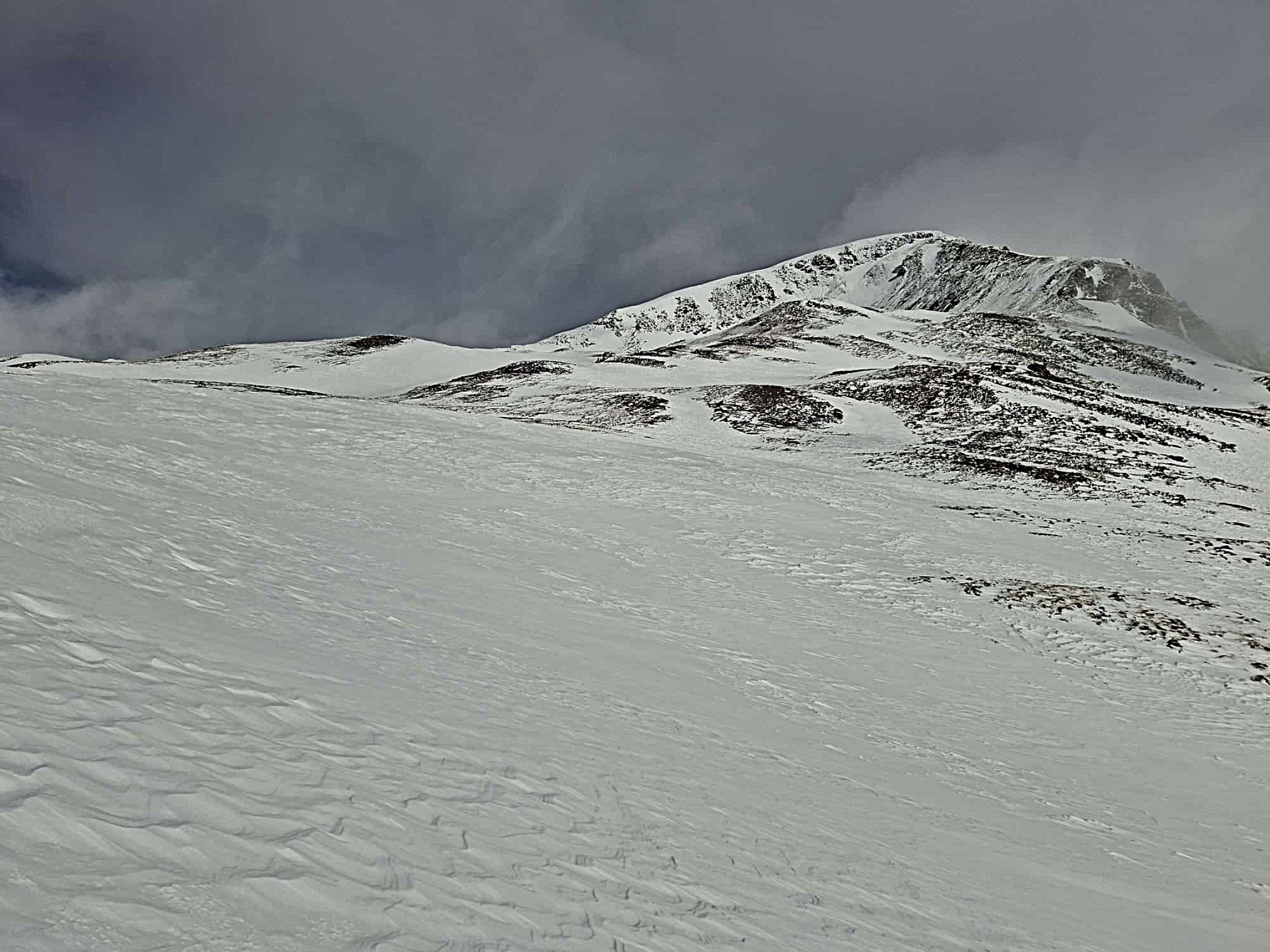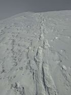 Über Nacht hatte es geschneit (10-15cm). Schneedecke tragend. Der Westgrat ist momentan ordeli abgeblasen. Mit Schneeschuh kein Problem. Die Skitüreler der letzten Tage haben daher auf etwa halber Höhe die Ski deponiert.