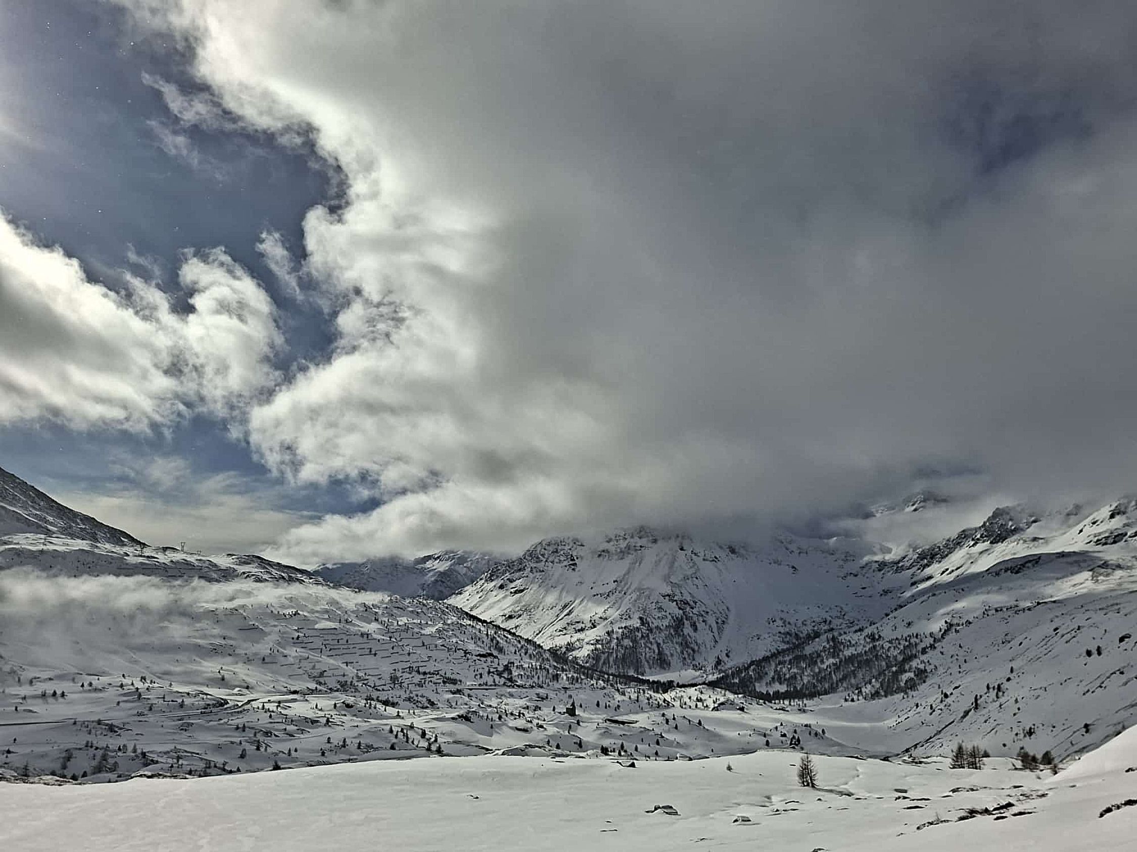 bei der Ankunft um 8.50 mit dem Postauto noch nebelverhangen. Später langsame Besserung.