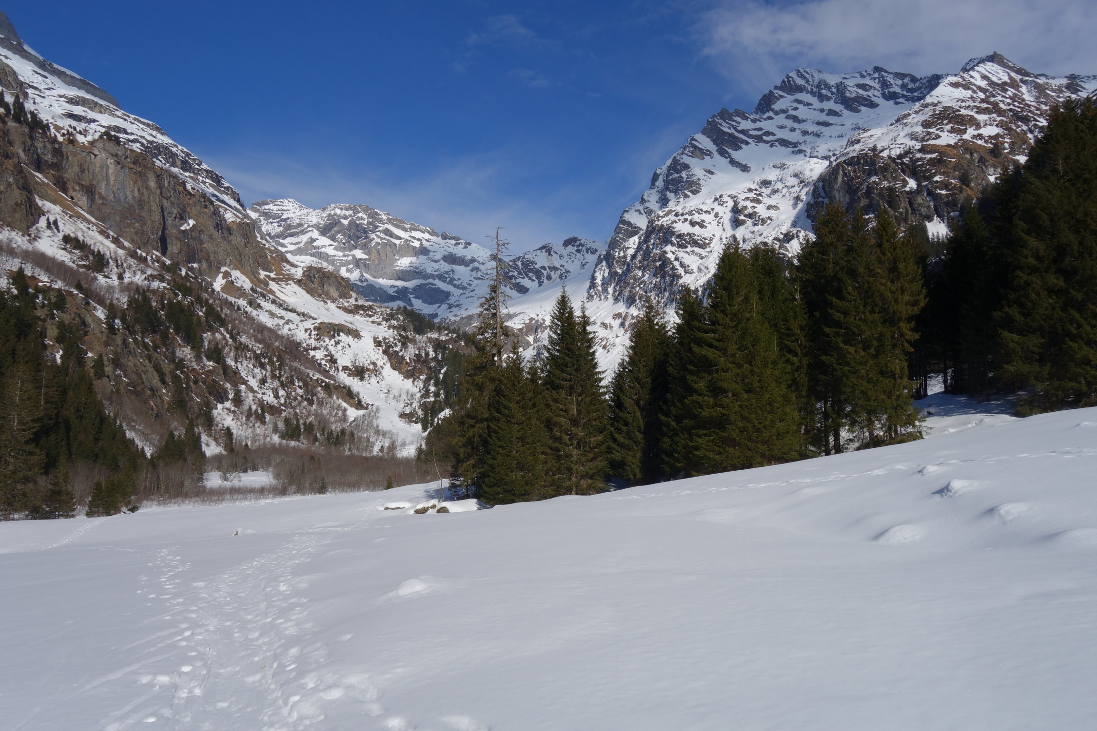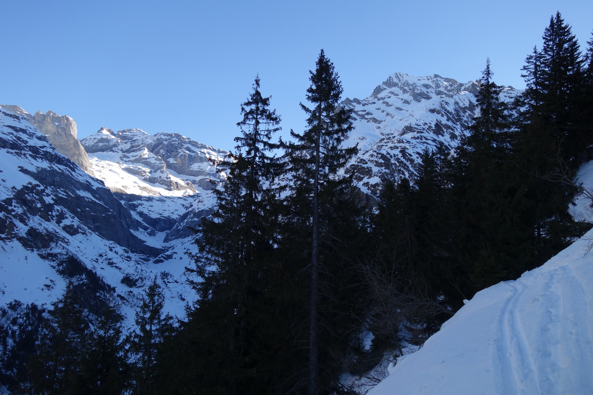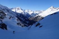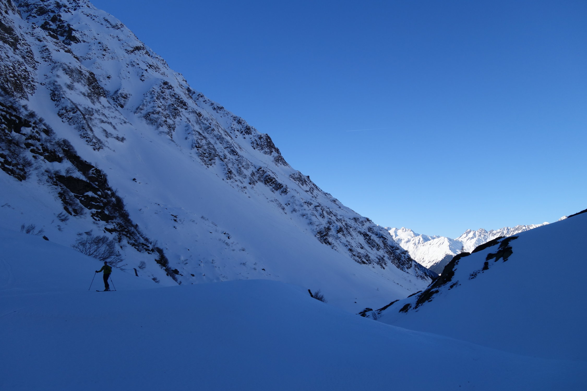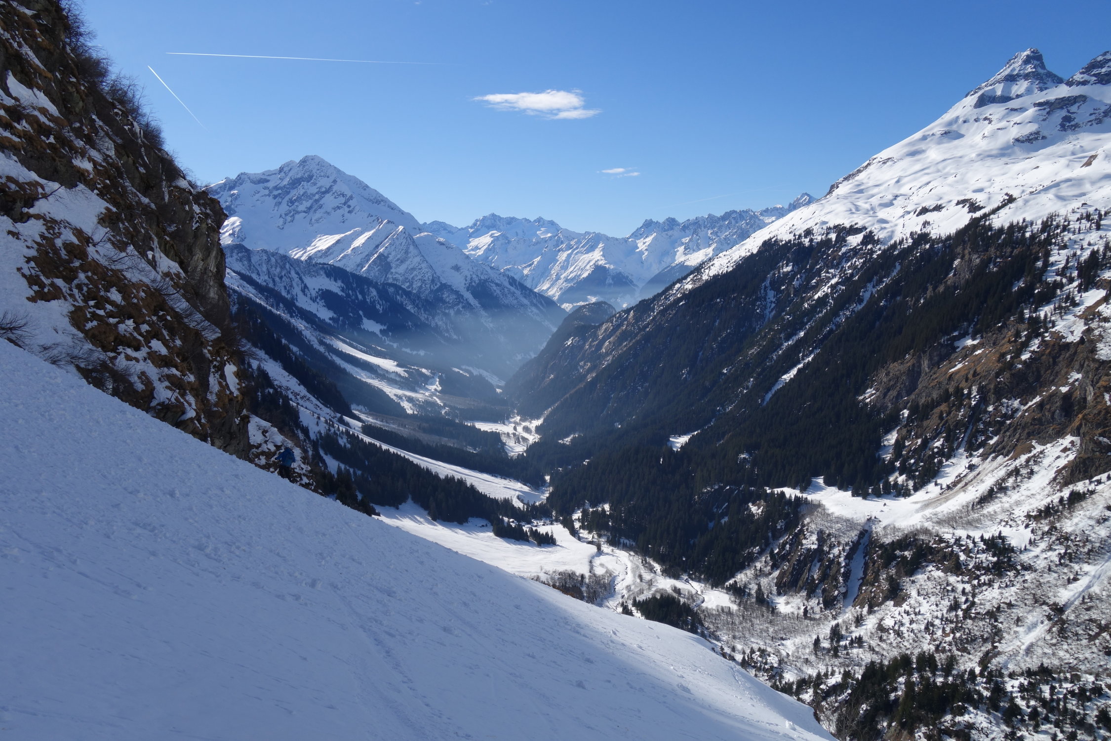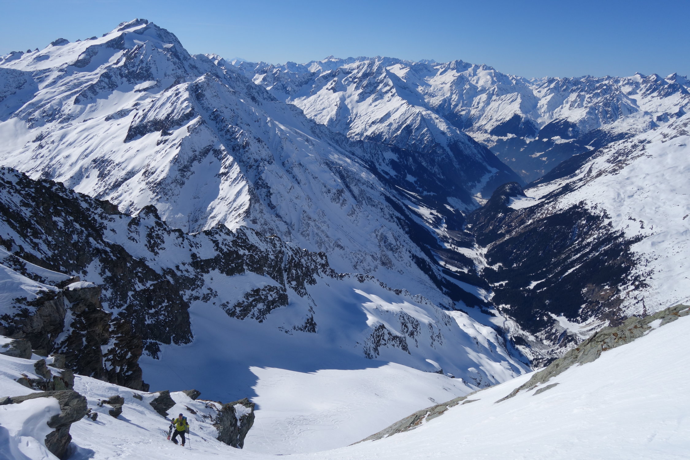 Heute um 6:30 in Bristen gestartet. Wir haben uns für den Aufstieg die Normalroute durch den Riggwald entschieden (mühsames Gelände mit einigen Lawinenkegeln). Hier ist uns bei auf ca. 1550m ein kleiner Verhauer passiert, da wir den Spuren die Flanke hinauf gefolgt sind. Hätten wir auf die eigentlich gut sichtbare rote Markierung geachtet hätten wir uns die zusätzlichen 60hm an steilen Spitzkehren schenken können...Bis Hinterbalm mühsam, dann deutlich enstpannter bis zum Couloir auf 2850m. Anfangs noch mit Ski, mussten wir nach ca. 50m HM die Ski buckeln, da der Schnee steinhart gefroren war. Danach in sulzigem Schnee zum Gipfelgrat und über diesen problemlos zum Gipfel (13:30). Die Abfahrt war dann erstaunlich gut, selbst die Abfahrt durch das Couloir dank Sonneneinstrahlung mittlerweile mit gutem Sulzschnee. Wir haben uns dann für die Abfahrt durch das Bärenchälen entschieden - naja, alles andere als ein Genuss bei dem bockharten Schnee...