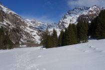 Bleibt gut. Auf dem Weg von der Brücke nach Legni bereits einige kurze schneefreie Stellen, die die nächsten Tage rasch grösser werden dürften.