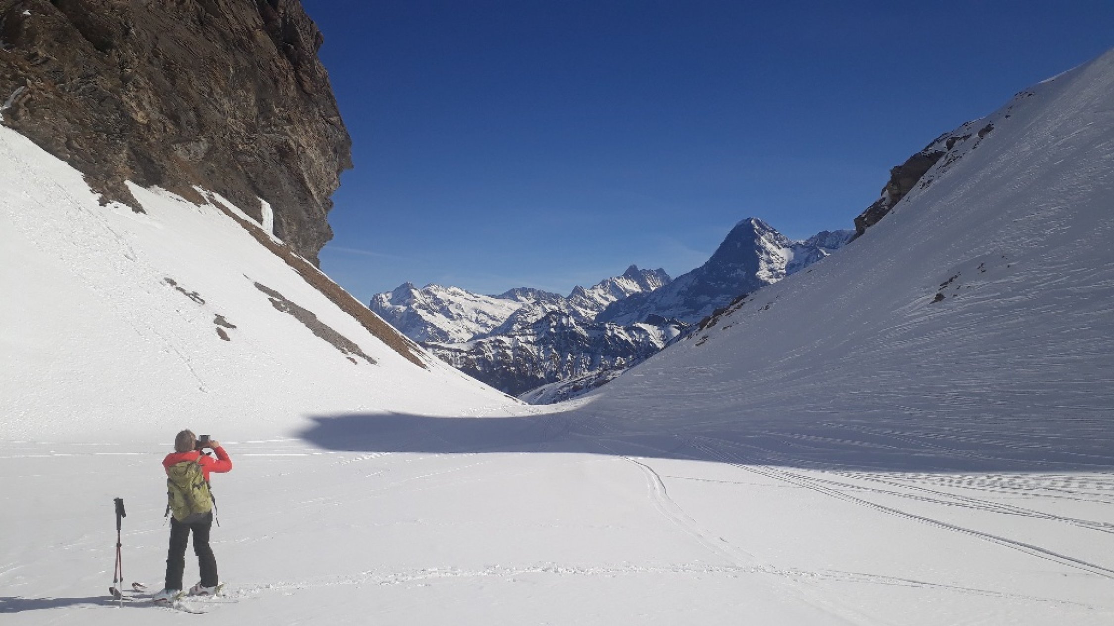 südlich der Lobhörner ist mit zunehmender Wärme und Tagesverlauf Vorsicht geboten