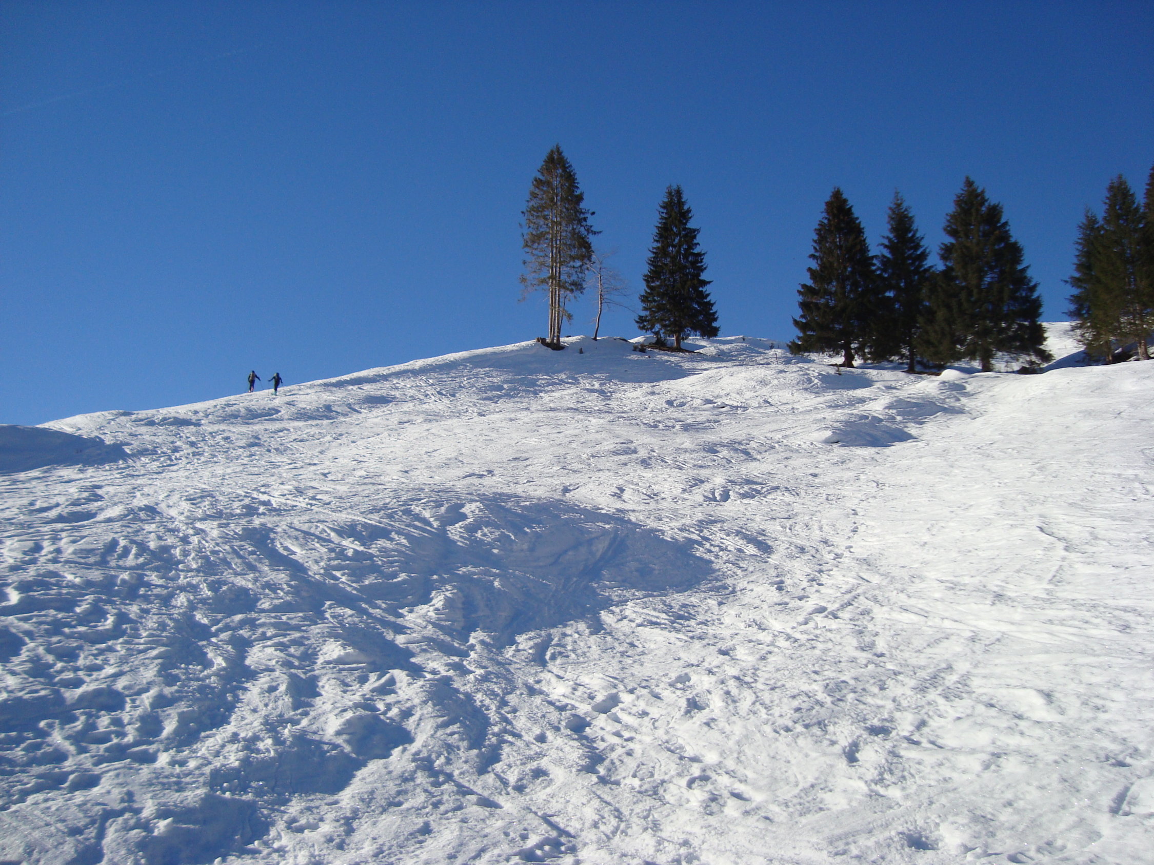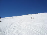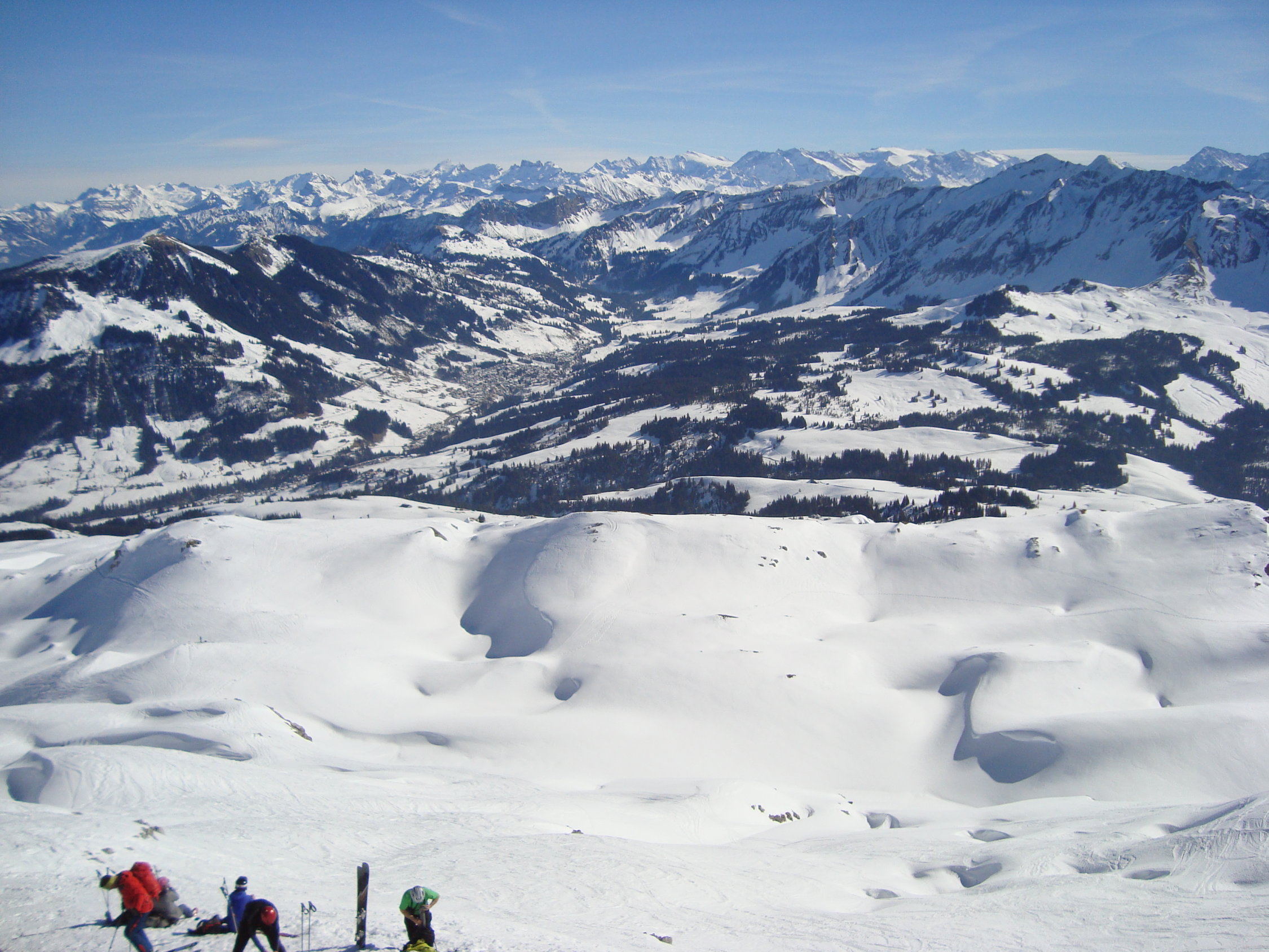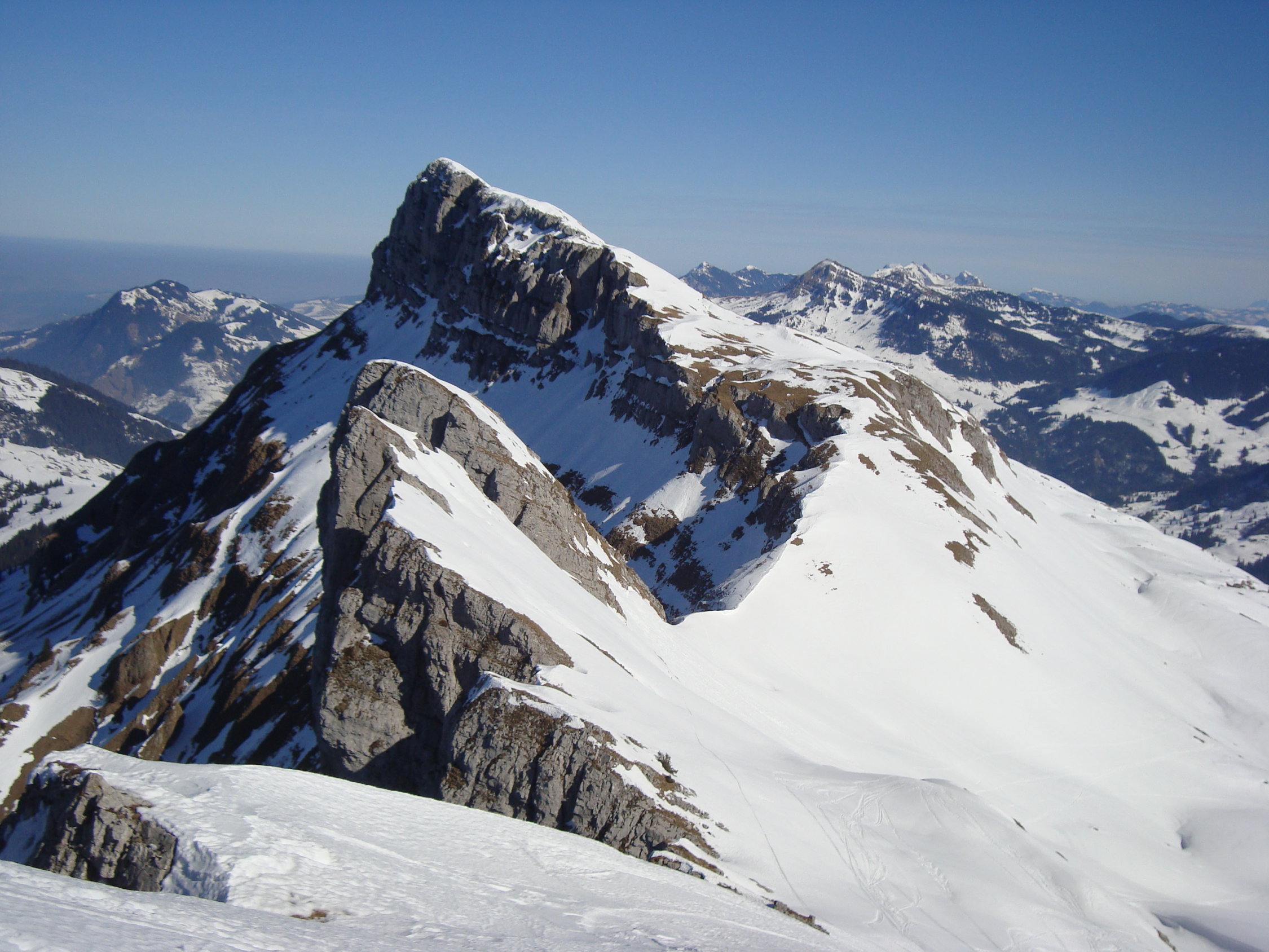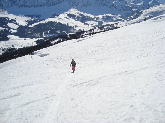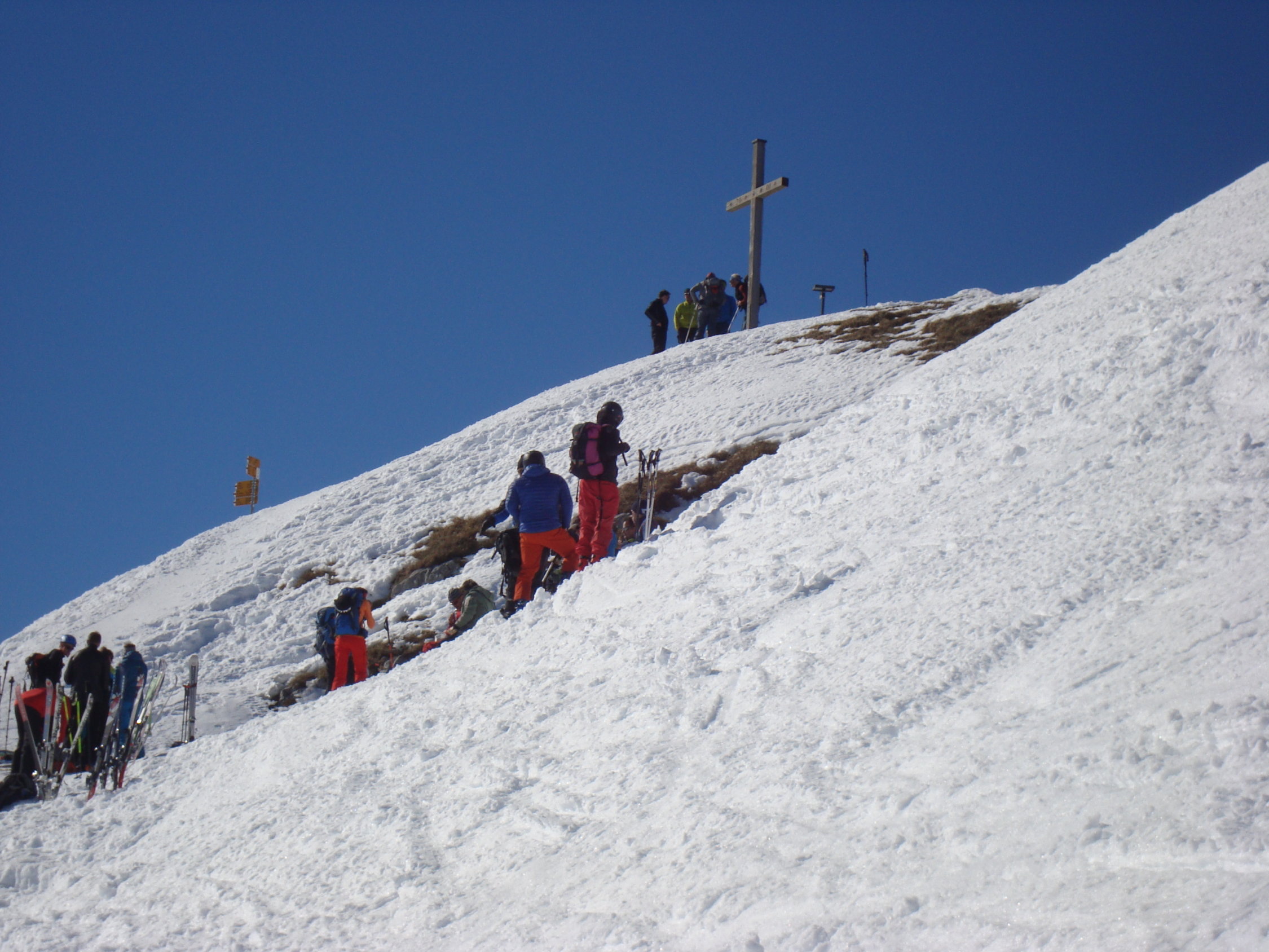 Der erste Hang zum Stächelegg war recht hart aber griffig. Danach mehr oder weniger angesulzter Schnee bis zum Gipfel, griffig und tragend. Pulver aufgrund der hohen Temperaturen und SO- Exposition selbstverständlich Fehlanzeige.