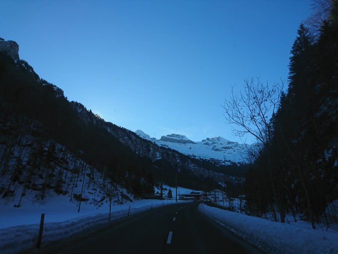 Aus dem Auto direkt auf die Ski :O) Schnee hat es im Gebiet also genug. Leider waren die unteren Hänge pickelhart und Harscheisen zwingend. Die Steilstufe im Wald war mega mühsam!