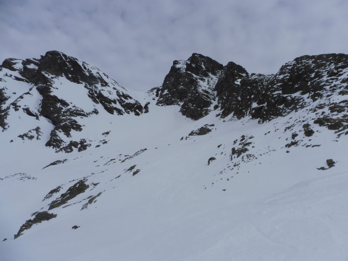 Weil das Wetter schlechter war als erwartet, hat es leider nicht aufgefirnt und war vielfach hart, stellenweise aber auch noch pulvrig. Schlupf gut eingespurt, geht mit Fellen und zu Fuß.