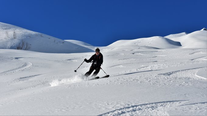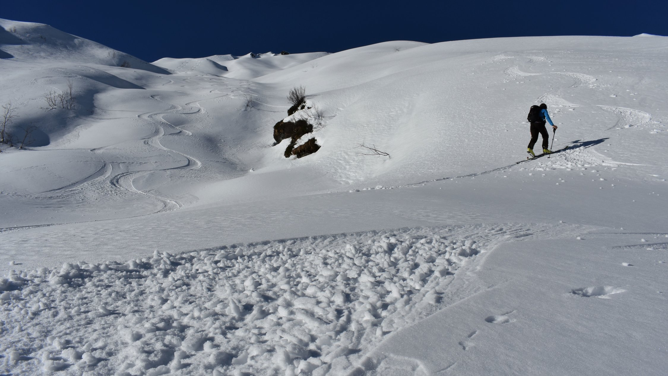 Beim Start -5 Grad und noch genügend Schnee ab PP. Am Gipfel windstill und warm.