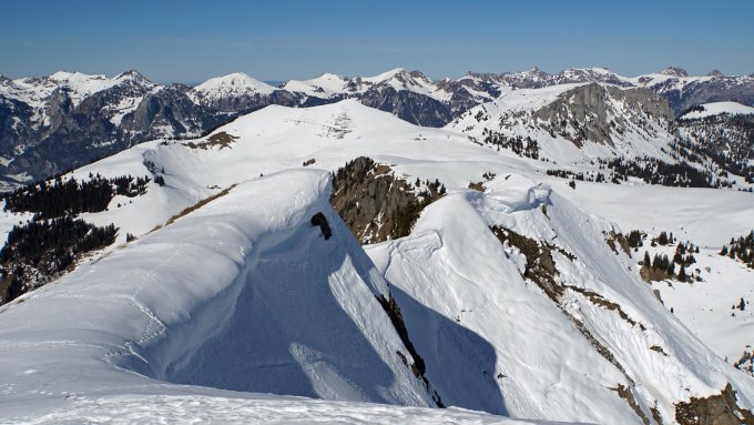 Weil etwas später los, guter Sulzschnee und niemand auf dem Gipfel. Welch einen Kontrast zu den Menschenmassen auf den Pisten am Rinderberg und auf dem Heimweg in den Zug... Nichtdestotrotz einen herrlichen Tag.
