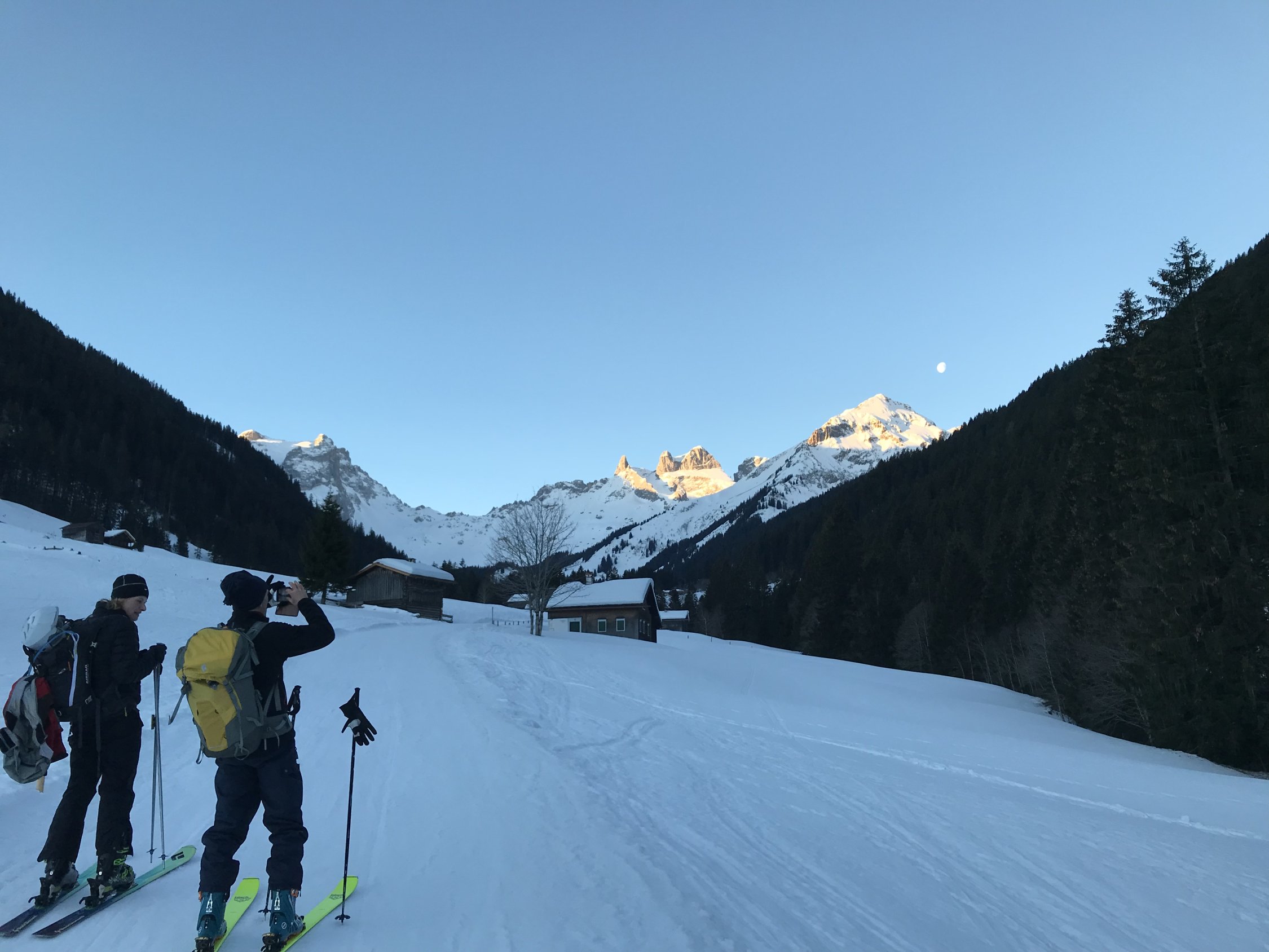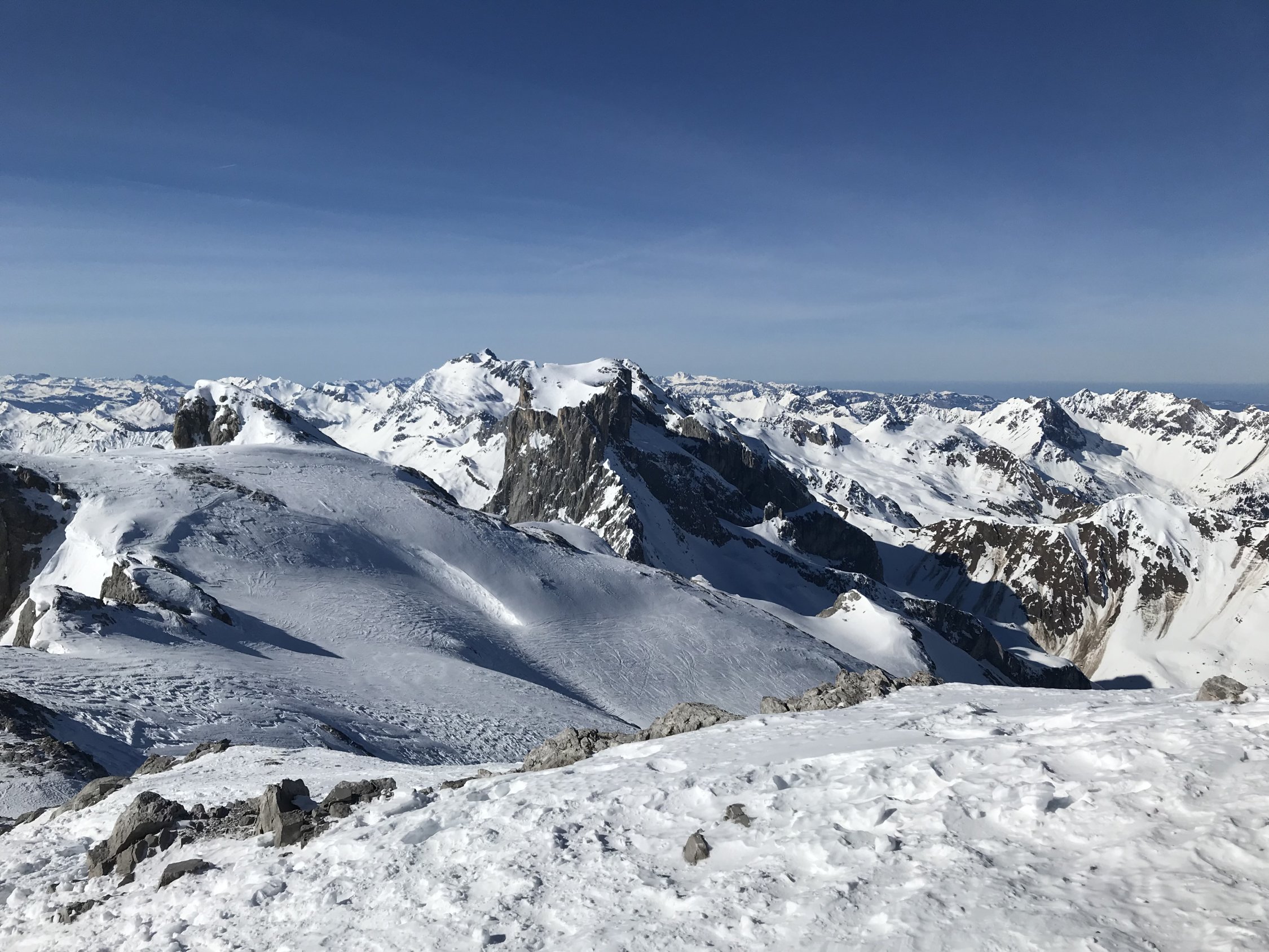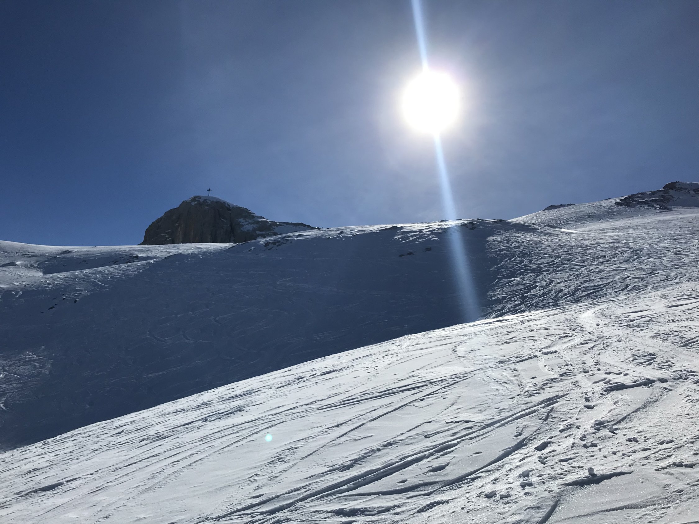 Topverhältnisse in Aufstieg und Abfahrt! Am Gipfel etwas Wind.