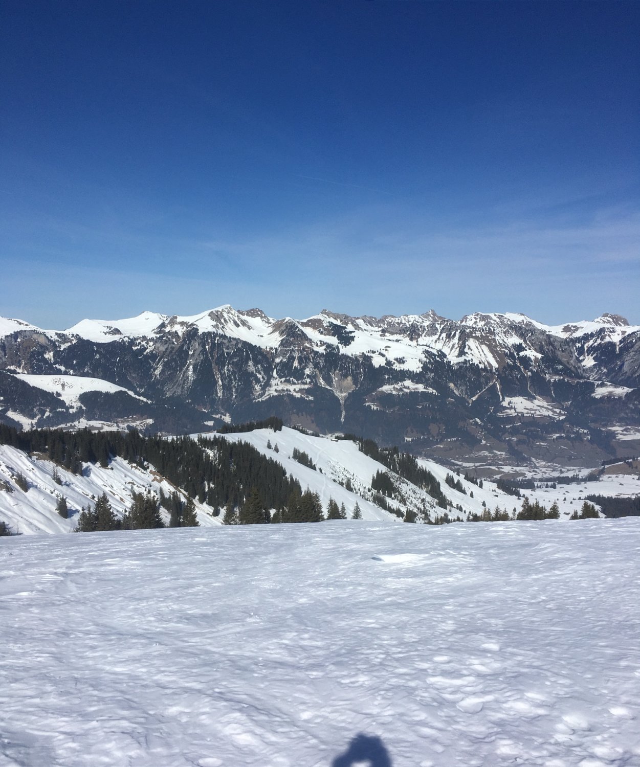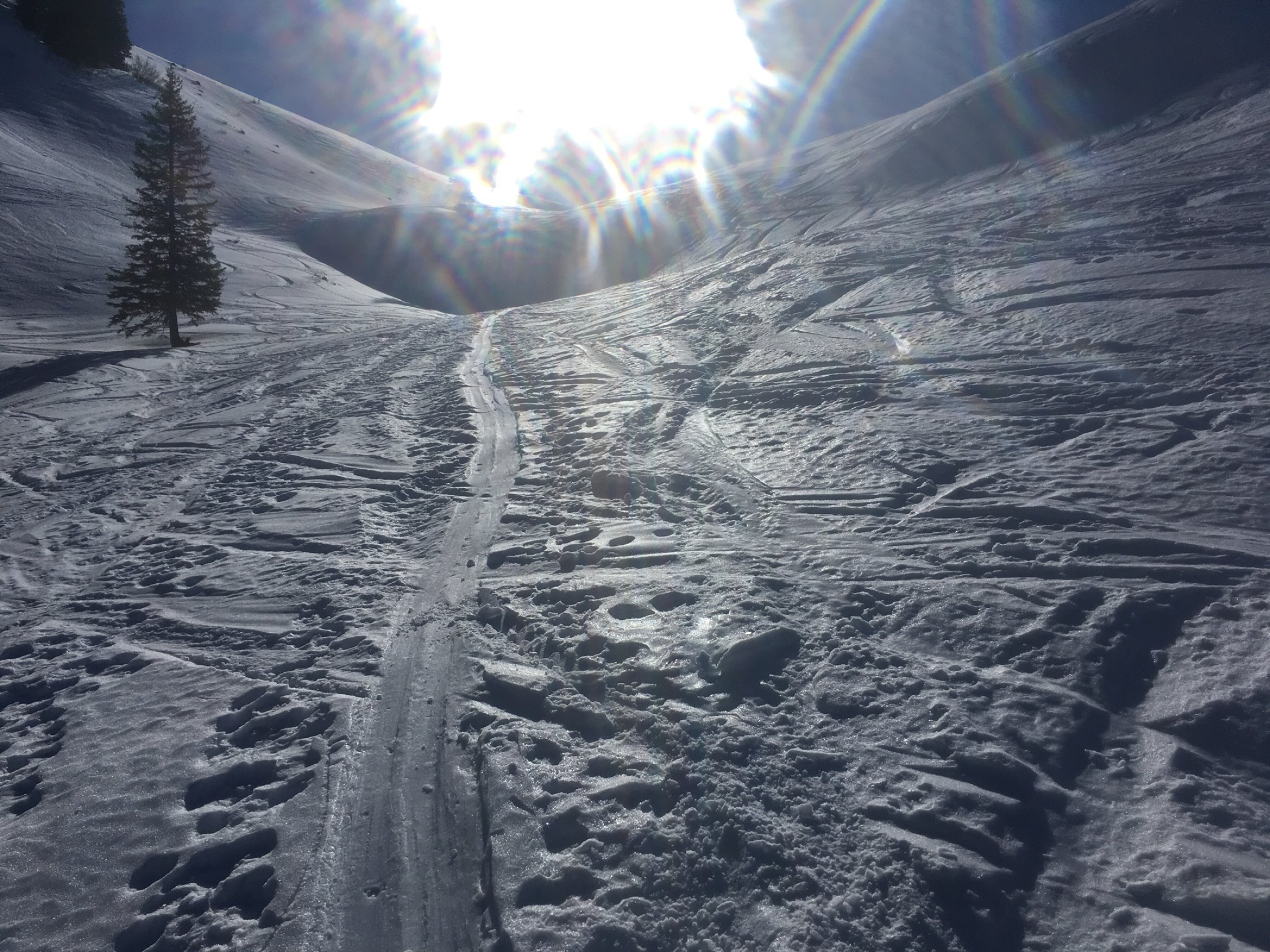 Oben Bruchharsch/ Hartschnee, an Waldrändern vereinzelt noch Pulver.