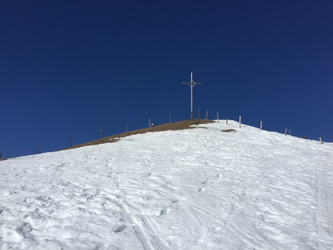 Es hat vom Parkplatz Langis noch durchgehend Schnee. Im Wald oberhalb der Passhöhe ist der Schnee üickeltart gefroer und taut auch im Lauf des Tages nicht auf. sobald man den Wald verlässt wird es momentan schnell sulzig und tief. Auf den letzten Aufstiegsmetern kurz vor 1200 Uhr war die Spur sehr weich.