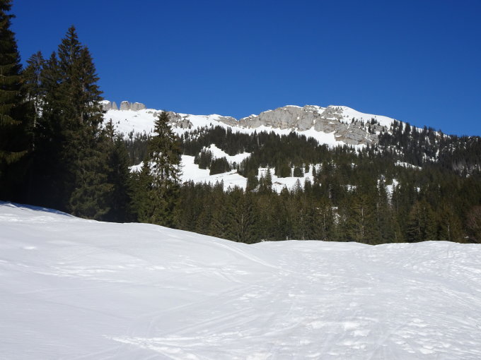 Schnee: das Gebiet um die Schratteflue ist noch sehr gut eingeschneit, die Karstlöcher sind gefüllt oder gut sichtbar(nur die Grossen sind offen), Frühlingsverhältnisse(und das im Februar) aber sehr gut zu fahren, teilweise Pistenänliche Bedingungen