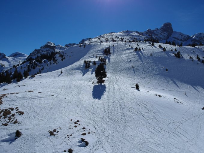 Abfahrt durch Chelli Tall wahrscheinlich mit besseres Schnee als normal Route.