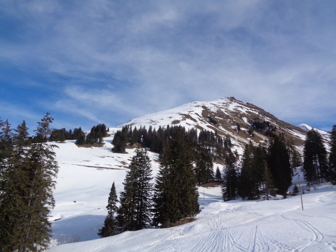 Ja, es lugged langsam mit dem Schnee und auf dem Galmschibehang schauen schon viele apere Lücken hervor.