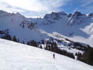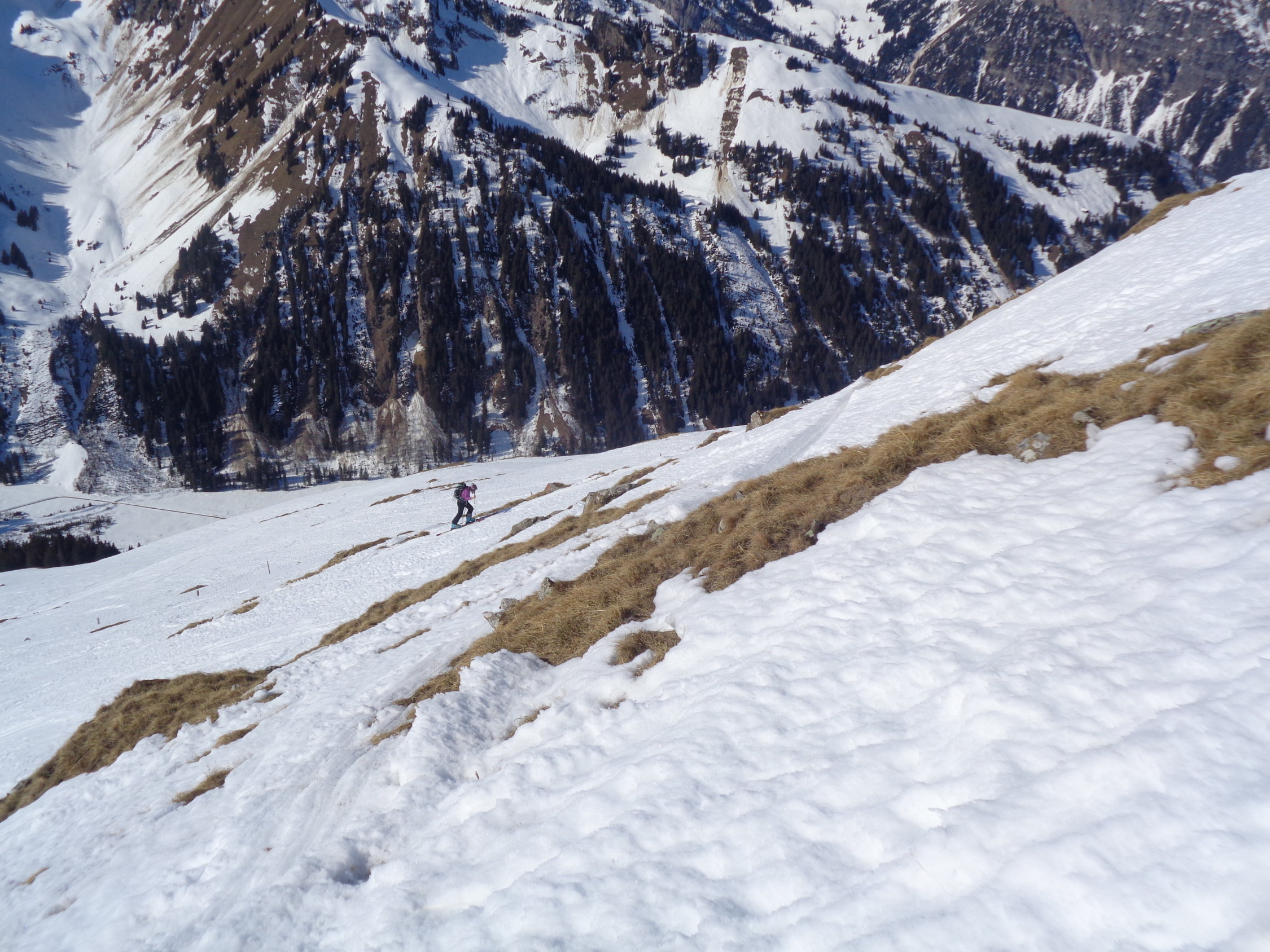 Aber das ist jammern auf hohem Niveau, denn im grossen und ganzen geht das Türelen noch hervorragend und nach dem Mittag ist auch schön aufgesulzt so dass man prächtig, schon beinahe pistenmässig abfahren kann. Das "Gut" bezieht sich einfach auf den Unterschied von Sulz zu Pulver...