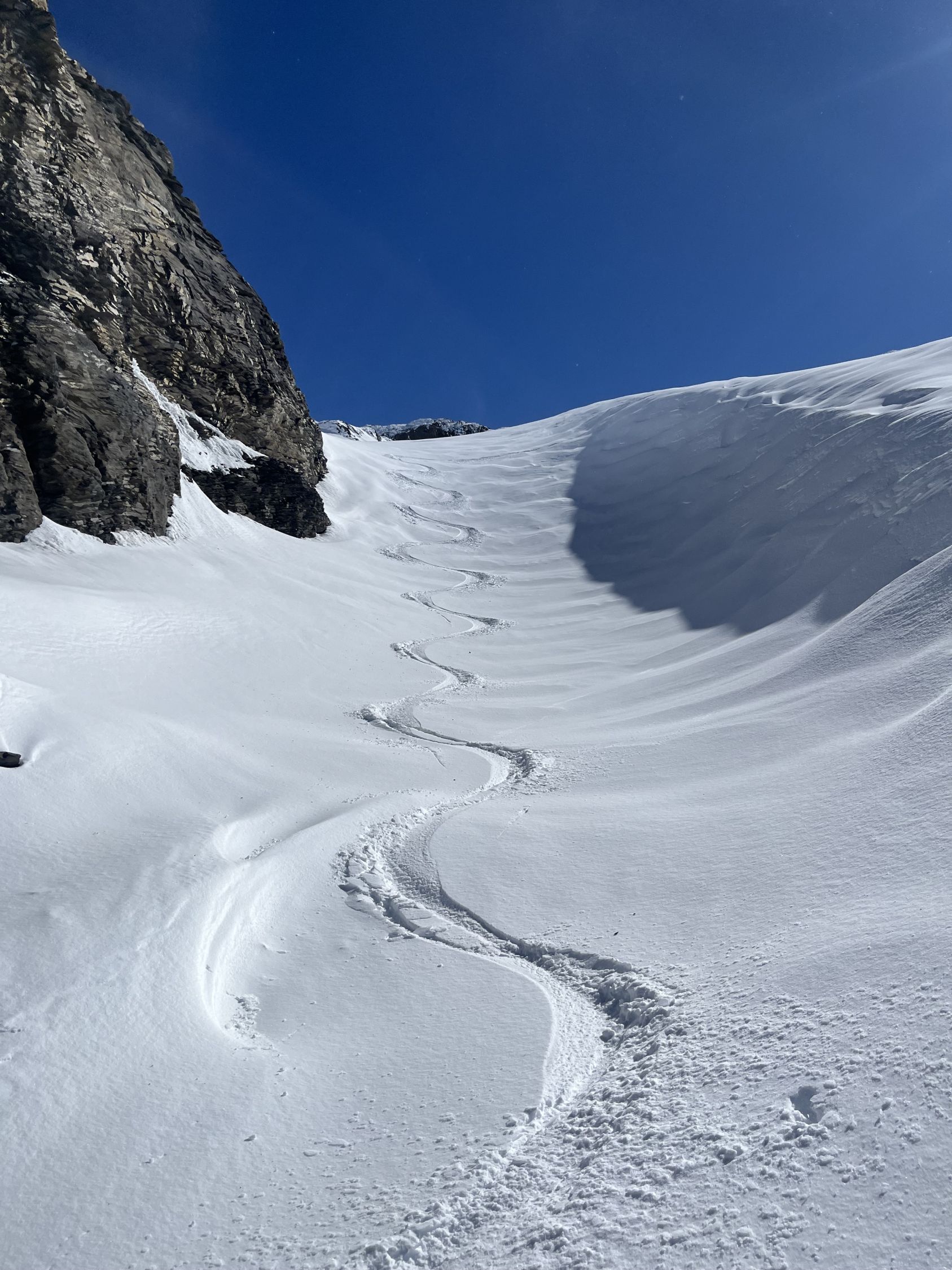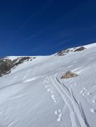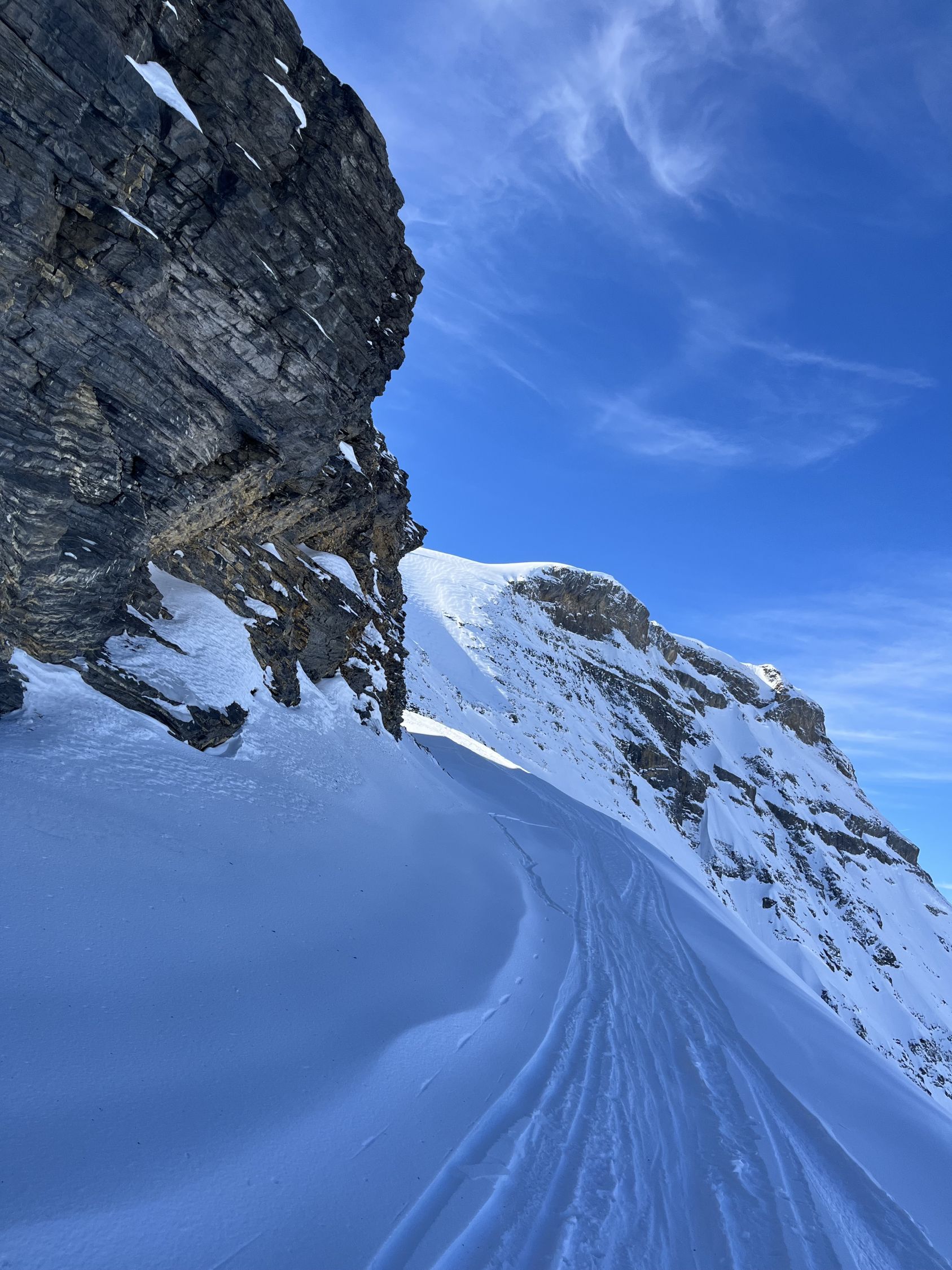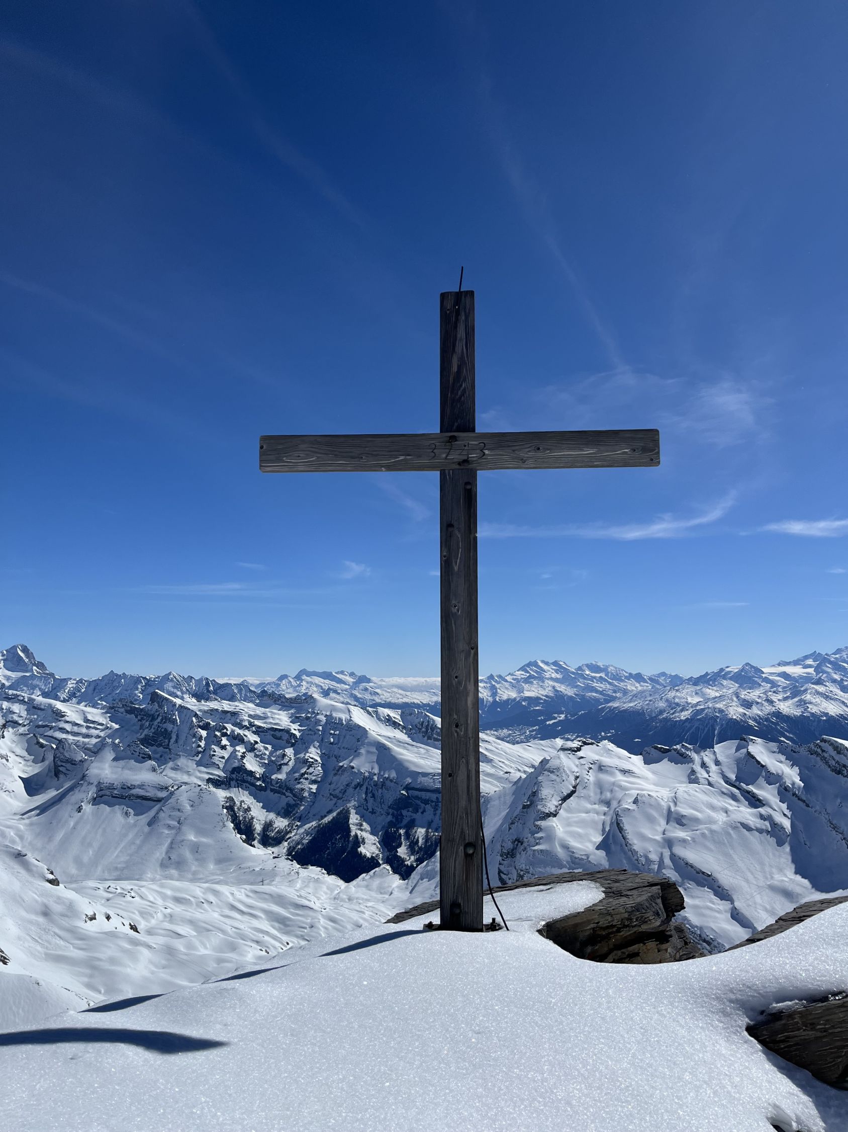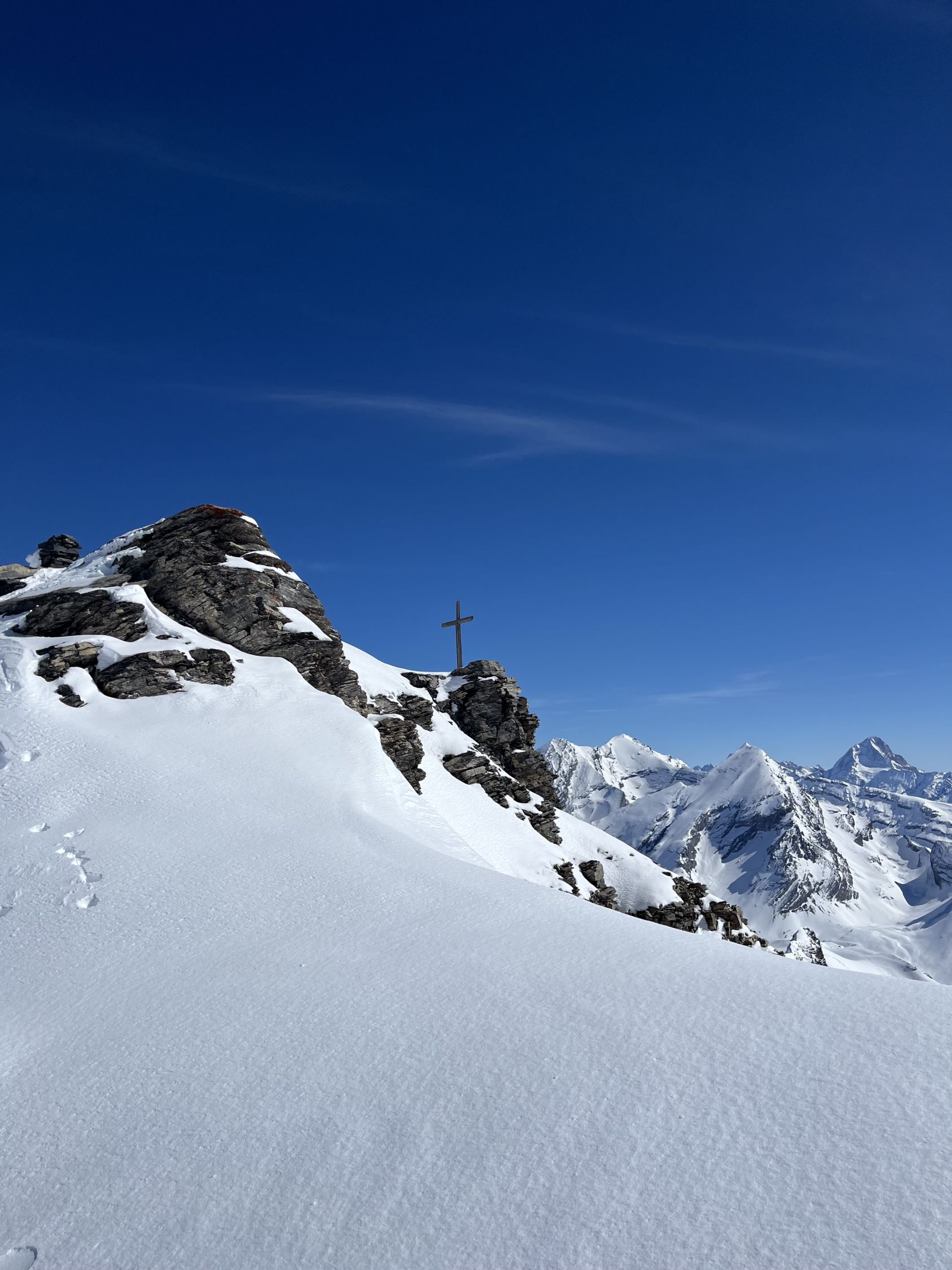 Um 8.45 Uhr auf die erste Bahn. Es hat schon auf der Engstligenalp 15 cm Neuschnee. Weiter oben ca. 25 -30cm frischer Pulver. Die Schneeverhältnisse waren bombastisch, Pulverschnee vom feinsten von oben bis unten. Beim Übergang zum Frühstückplatz hat es keine schöne Spur, nur um die Ecke. Beim Aufstieg müssen die Skier aufgebunden werden. Die Trittschneespur wird immer wieder vom Wind zugeweht. Steigeisen und Pickel sind hilfreich. Da es oben eine grosse Gwächte hat, haben Bergführer eine Trittschneespur um den Felsen gemacht. Wenn man sicher auf den Skier steht, kann man beim Frühstückplatz abfahren. Auf dem Gipfel war eine traumhafte Fernsicht. Der Wind war mässig. Es war einmal mehr eine wunderschöne Tour.