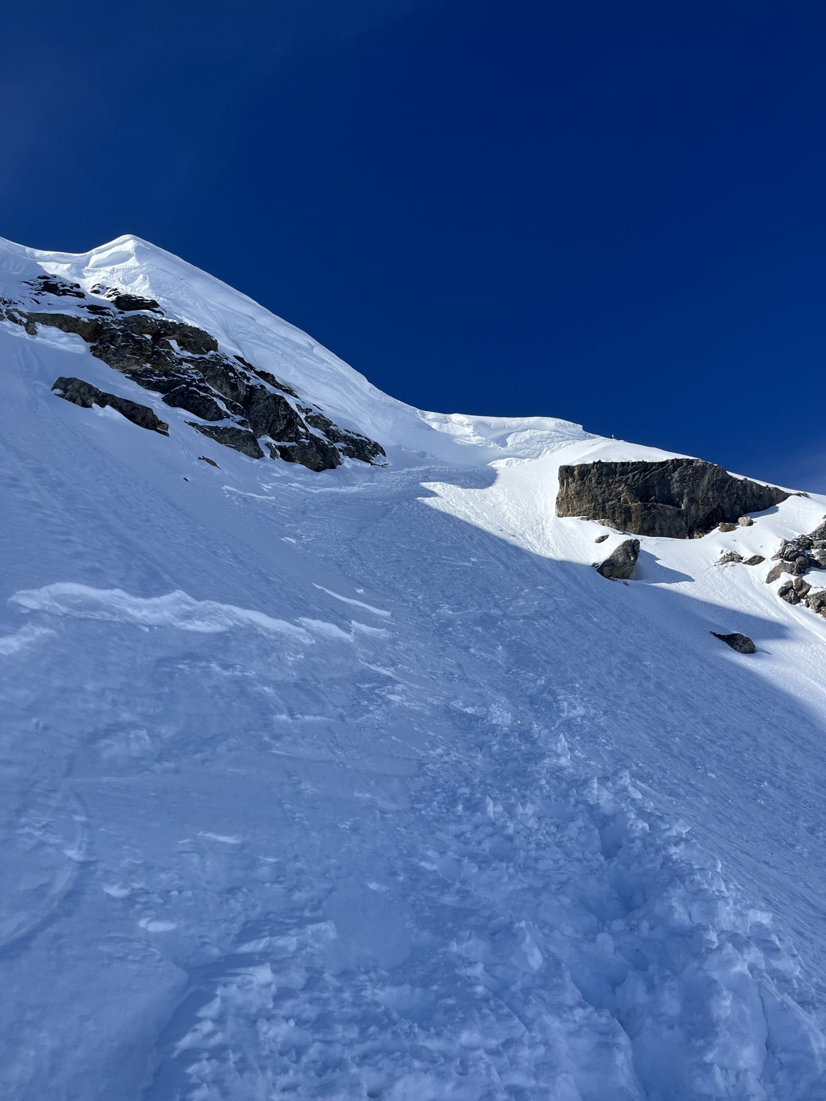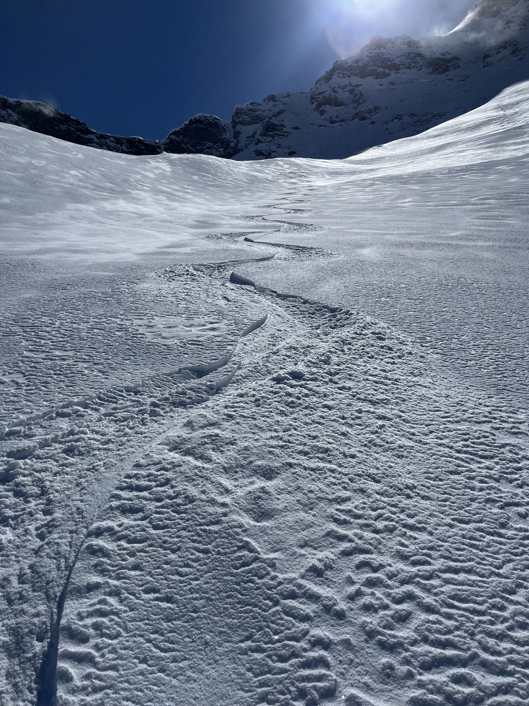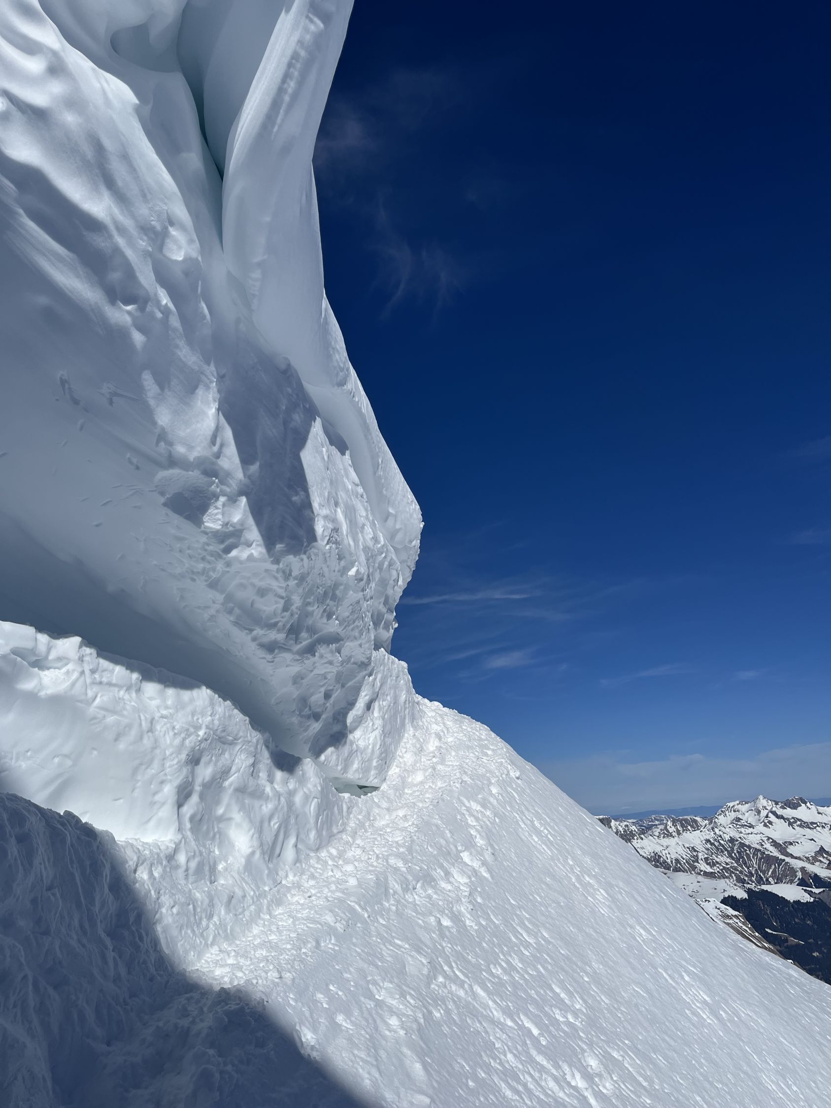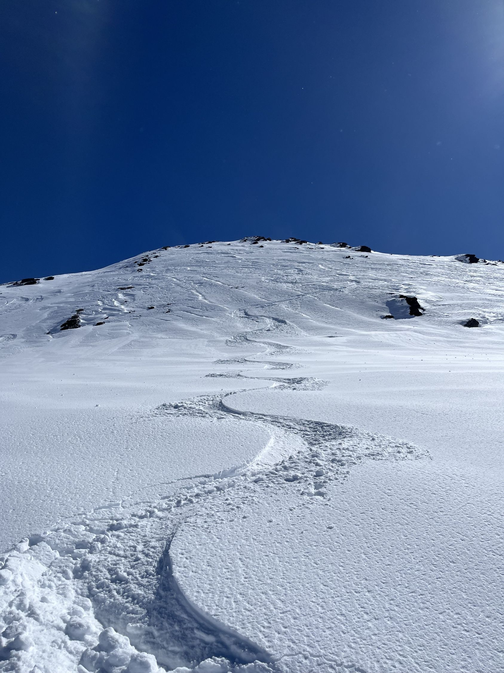 Um 8.45 Uhr auf die erste Bahn. Es hat schon auf der Engstligenalp 15 cm Neuschnee. Weiter oben ca. 25 -30cm frischer Pulver. Die Schneeverhältnisse waren bombastisch, Pulverschnee vom feinsten von oben bis unten. Beim Übergang zum Frühstückplatz hat es keine schöne Spur, nur um die Ecke. Beim Aufstieg müssen die Skier aufgebunden werden. Die Trittschneespur wird immer wieder vom Wind zugeweht. Steigeisen und Pickel sind hilfreich. Da es oben eine grosse Gwächte hat, haben Bergführer eine Trittschneespur um den Felsen gemacht. Wenn man sicher auf den Skier steht, kann man beim Frühstückplatz abfahren. Auf dem Gipfel war eine traumhafte Fernsicht. Der Wind war mässig. Es war einmal mehr eine wunderschöne Tour.