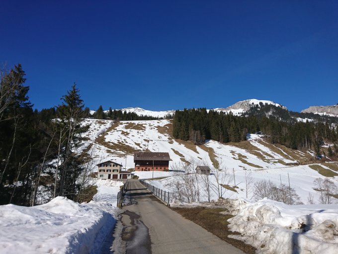 Die Ski können (noch) gleich bei der Hirsegg montiert werden. Es gibt zahllose Spuren Richtung Gipfel. An einigen Stellen wird es schon bald aper. Aber insgesamt noch ein guter Aufstieg. Bei der Abfahrt trifft man alles an Schneearten an, je nach Route. Ich habe mir eine durch den Wald Richtung Bodenhütte gesucht ;O)