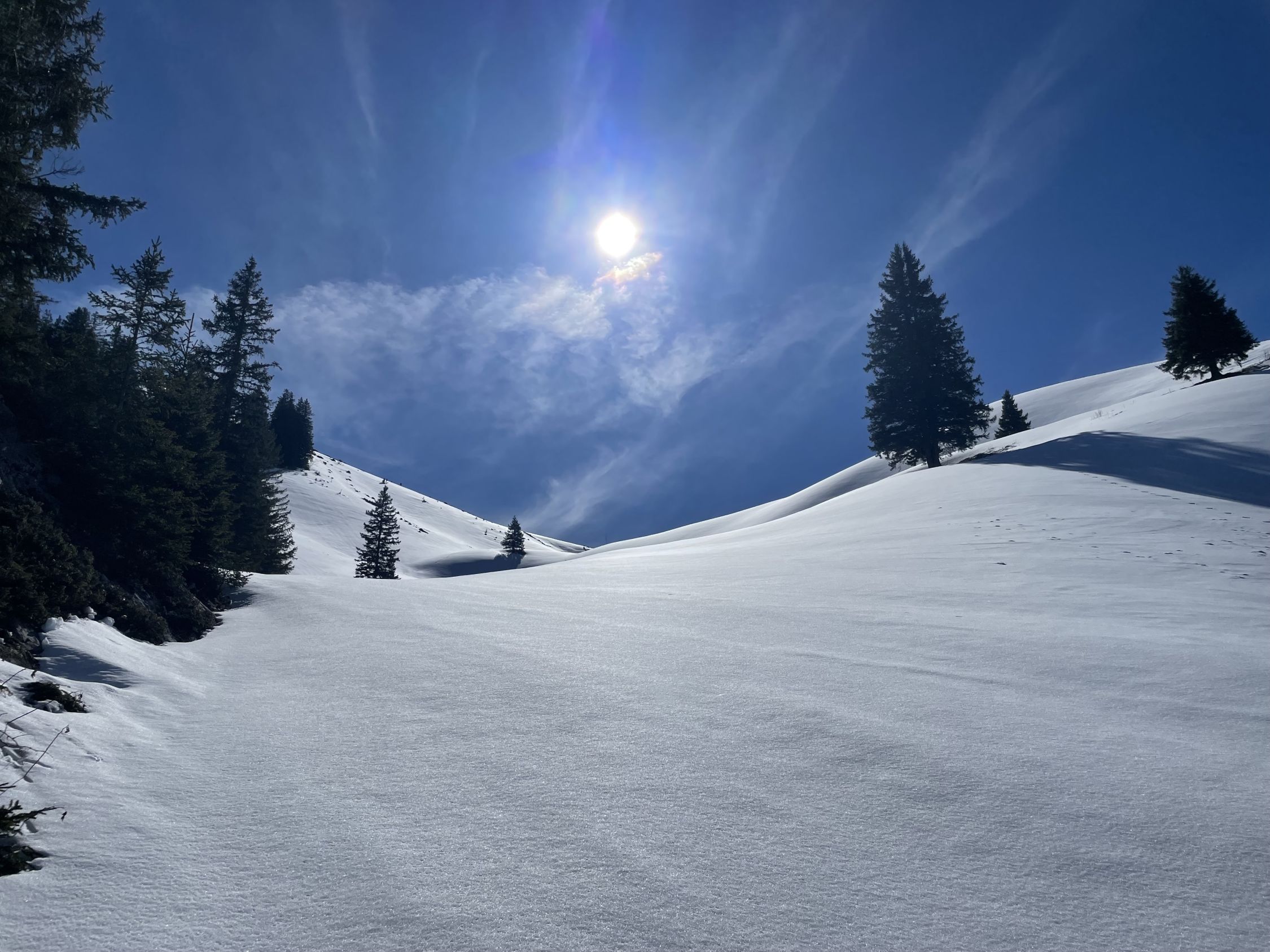 Mit Neuschnee je nachdem sogar wieder kurzzeitig ohne Tragestrecken.