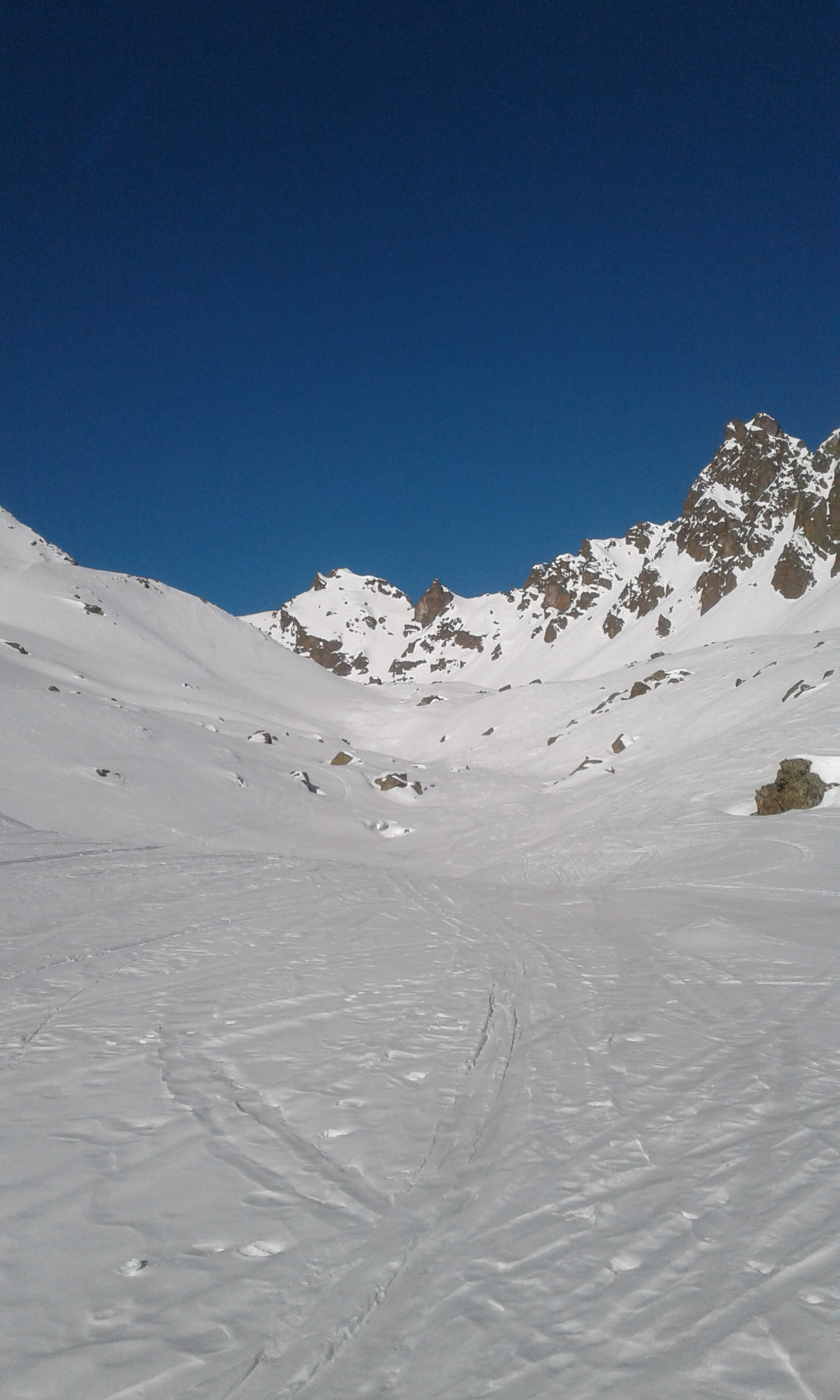 Nordseitig teilweise Pulver, teilweise hart, weiter unten im Ganda Tal dann znehmend Firn oder Sulzschnee....Immer mal wieder harte Stellen von oben bis unten.