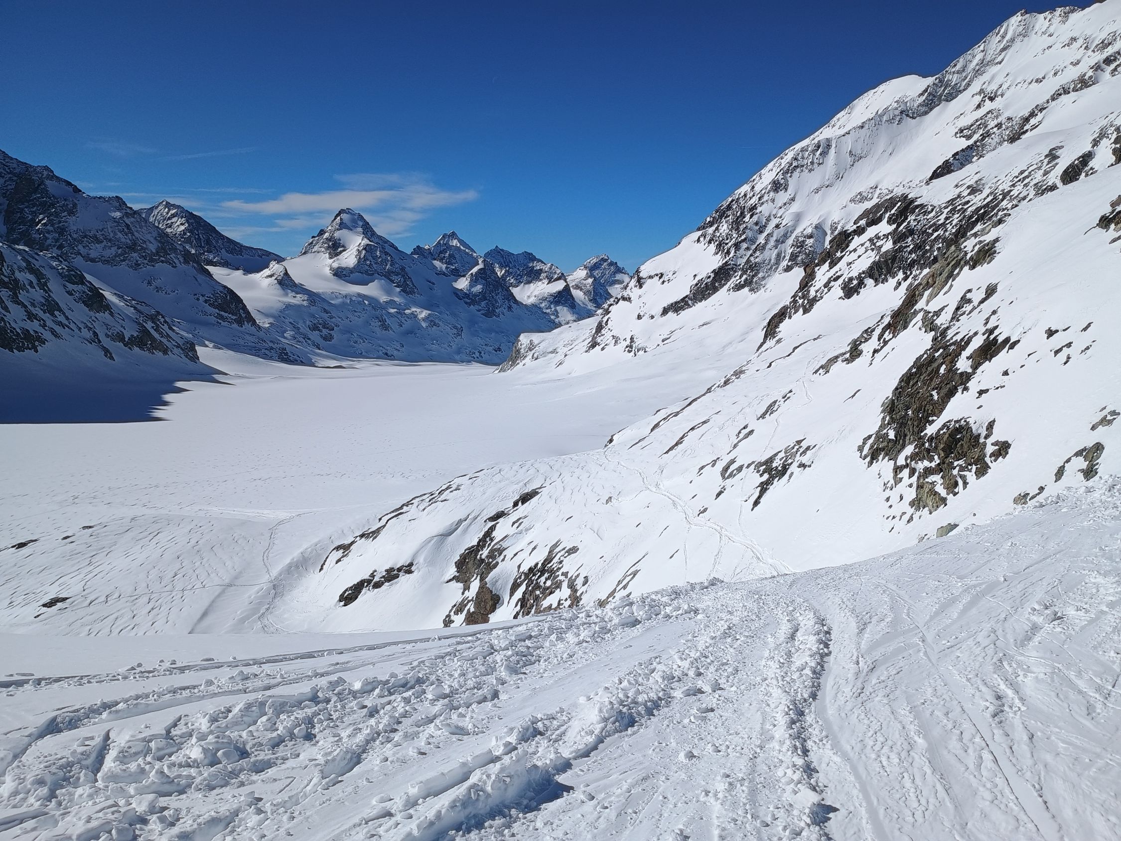 Endlich. Schon lange wollte ich diesem Gipfel einen Besuch abstatten, am liebsten mit den Ski. Direkt ab Arolla hätte jetzt nicht sein müssen, aber in Anbetracht des letzten Wetterfensters musste das heute sein :) ich war erstaunt, dass wir es in 5:45 geschafft haben, inkl Pausen. Ein klein bisschen stolz sogar. Allen gute Touren und noch einen tollen Skihochtourenfrühling.