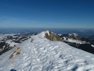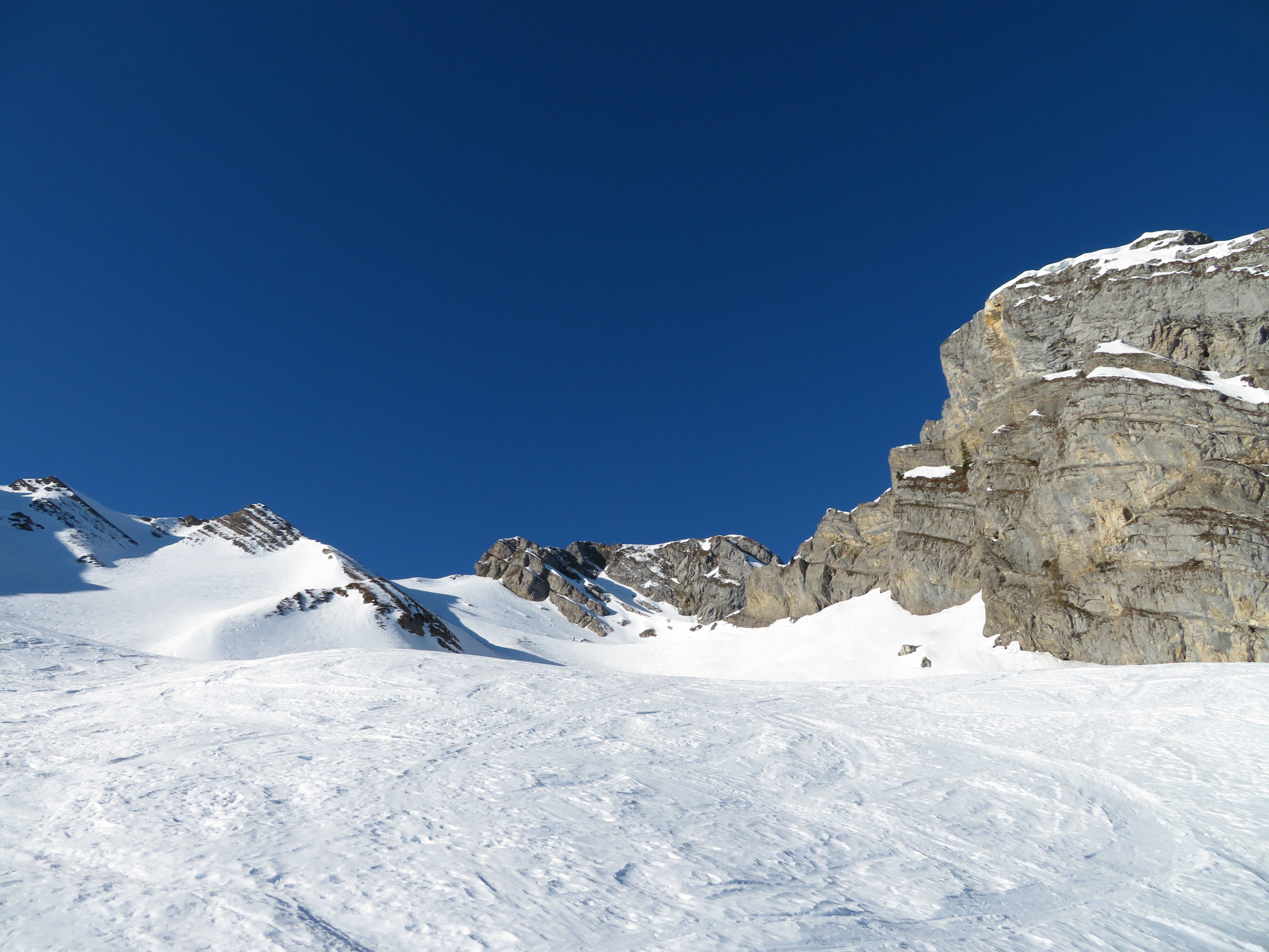 Bei der Abfahrt um 10.45 Uhr war der Gipfelhang gerade noch einigermassen fahrbar. Danach tiefer Nassschnee.