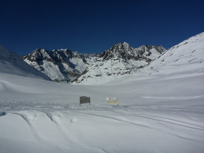Im Abstieg kurz vor Fiescheralp mehrere Nassschneelawinenkegel, die im Aufstieg noch nicht da waren.