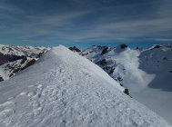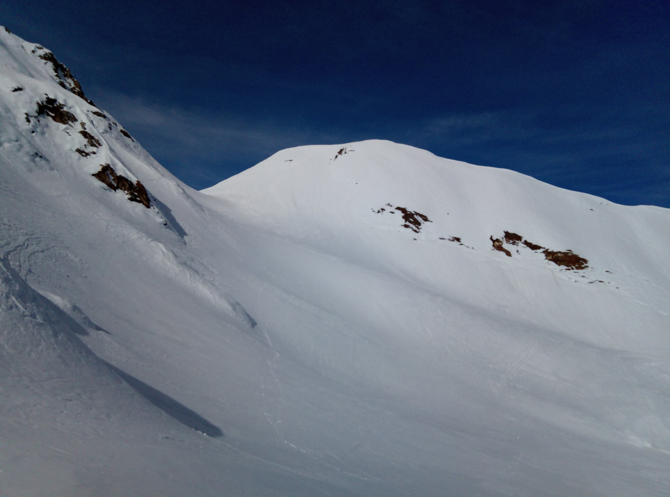 Nach der Wochen (3?) langen Schönwetter Periode lassen sich auch Nordhänge ohne Spurarbeit begehen; Kraft spareder Aufstieg und wegen der warmen Temperaturen nach der Mittagszeit, angenehmer Abstieg im weichen Schnee.