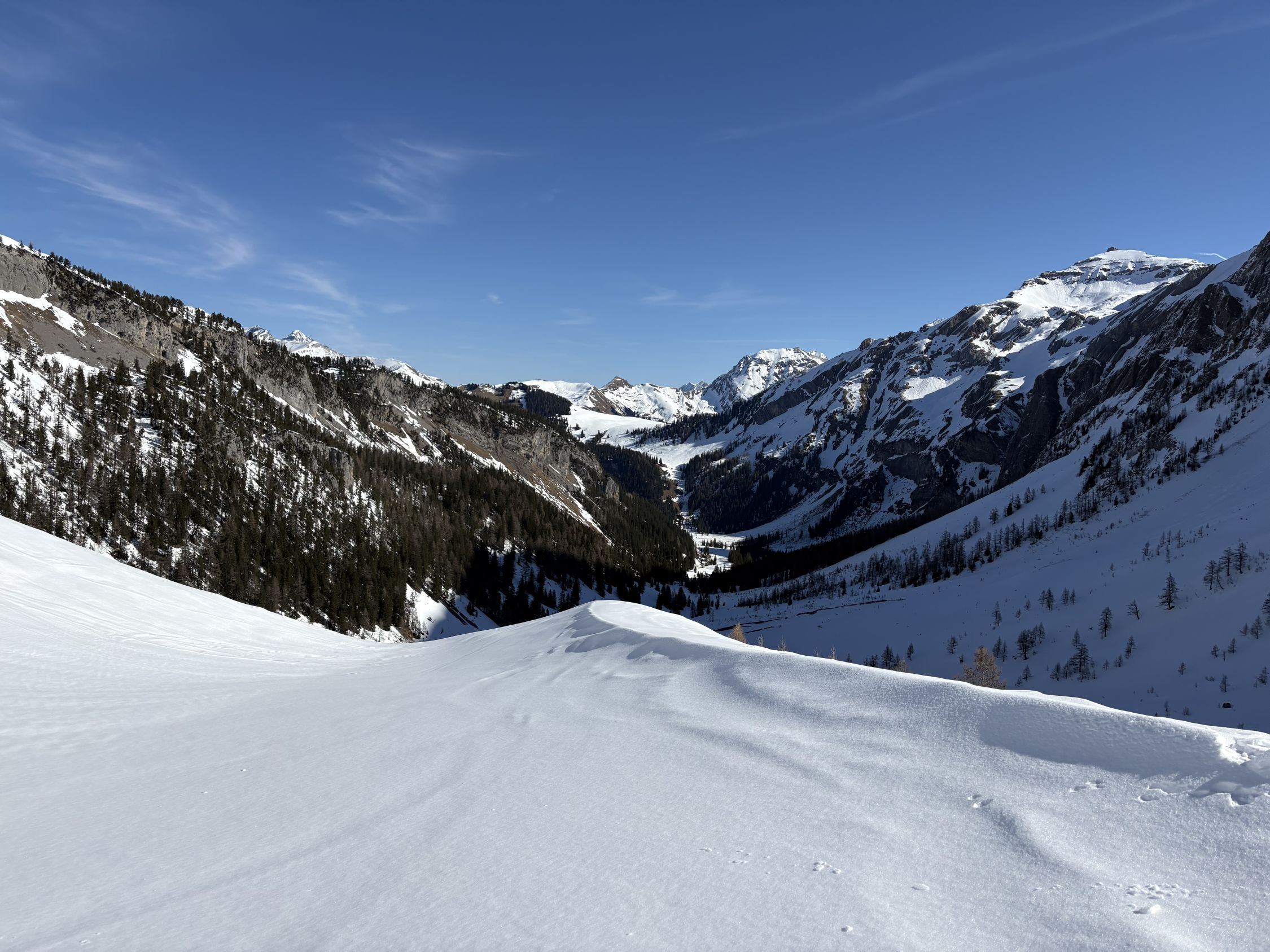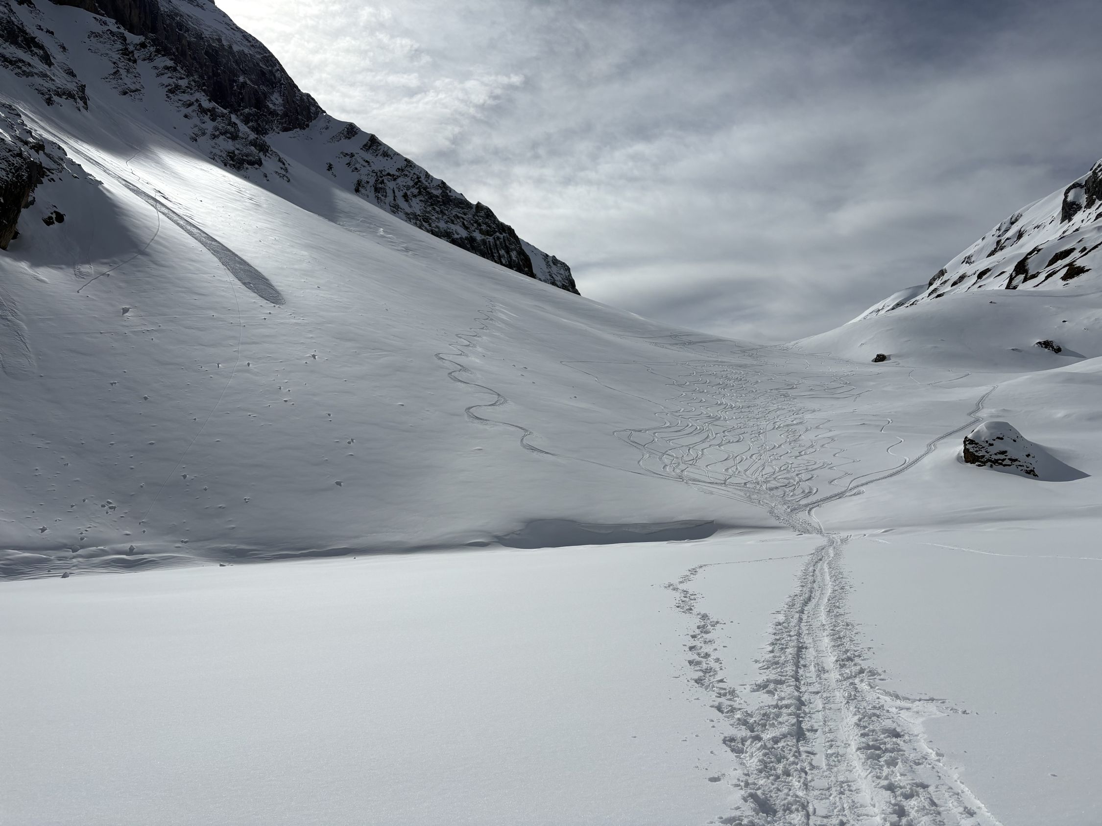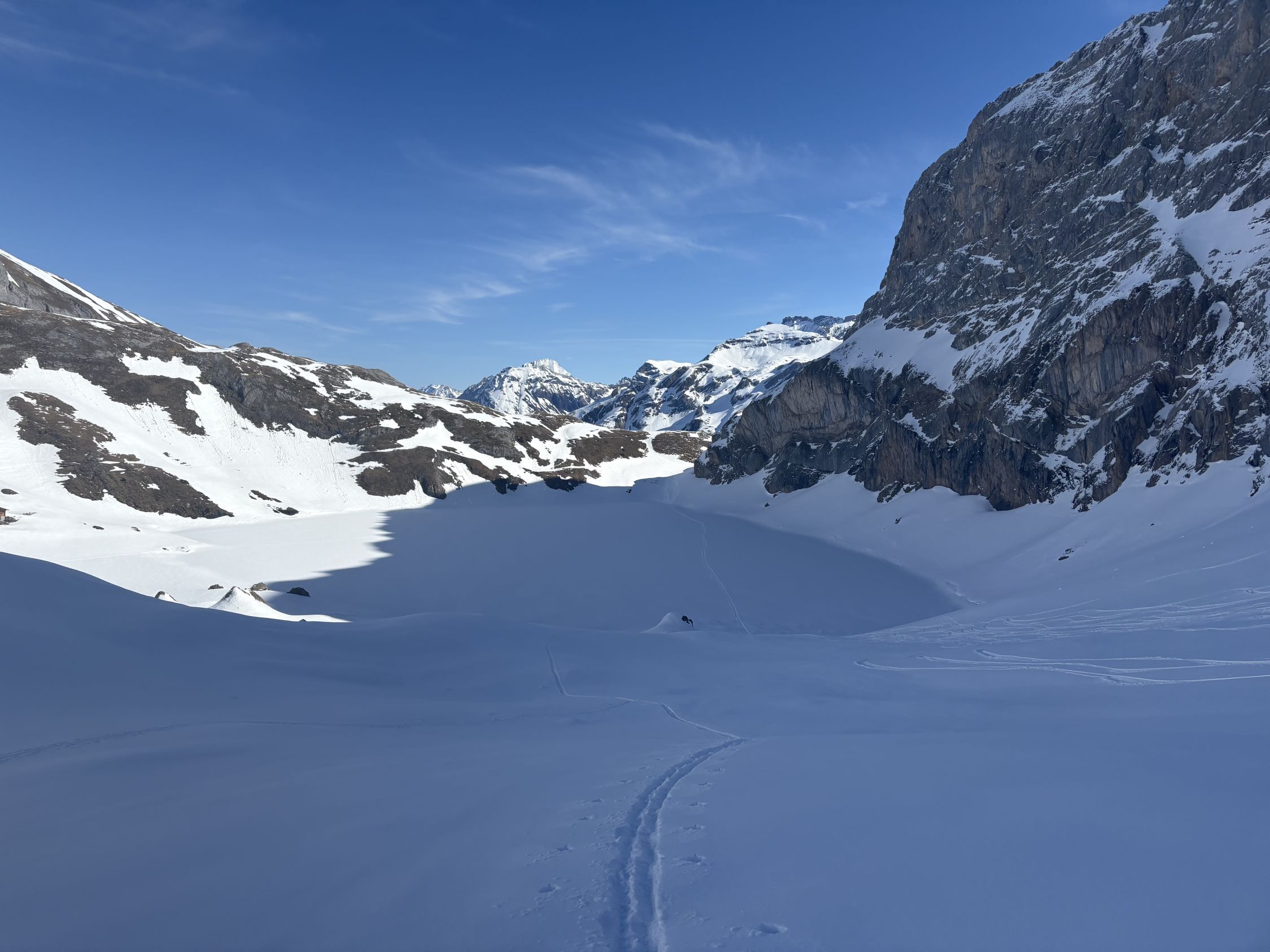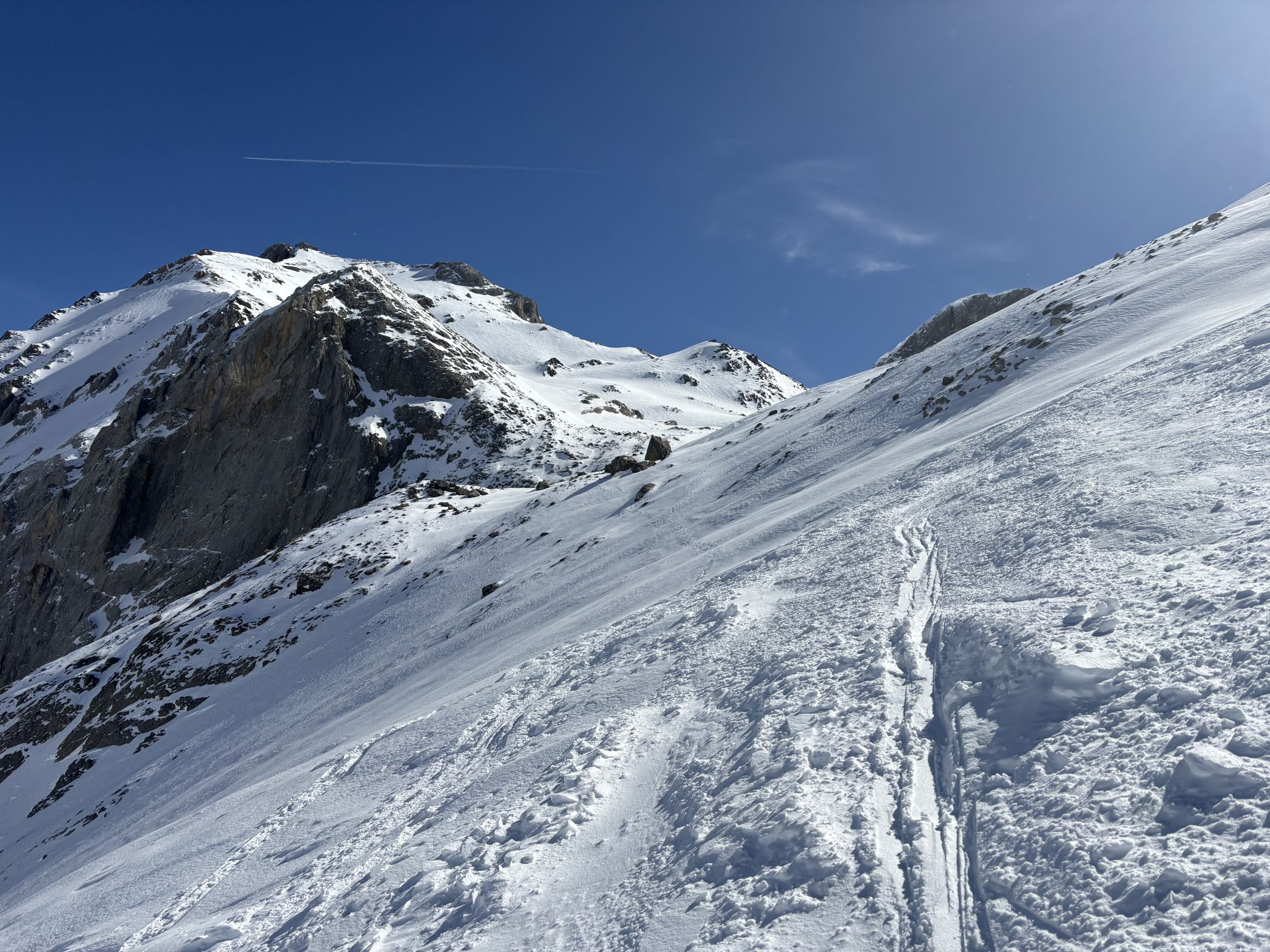 Von der Hubelmatte zur Iffigenalp geräumt, mit einigen vereisten Stellen, v.a. beim Ritzweg. Bin um 9.40 von der Iffigenalp los, unten war die Spur recht glasig, weiter oben immer mal wieder zugewindet. Schnee überwiegend pulvrig, ausser bei der Iffigenalp, wo es harschig war. Bis zum Gipfel blauer Himmel, dann zog es zu (war gegen 13.40 oben). Schnee in der Abfahrt ziemlich gut, Pulver, teils mit Winddeckel, erst unterhalb Iffigsee auch etwas Sulz. In den vergangenen Wintern bin ich meist erst im April auf das Wildhorn, da war unterhalb Iffigsee immer Bremsschnee und oberhalb Sulz.