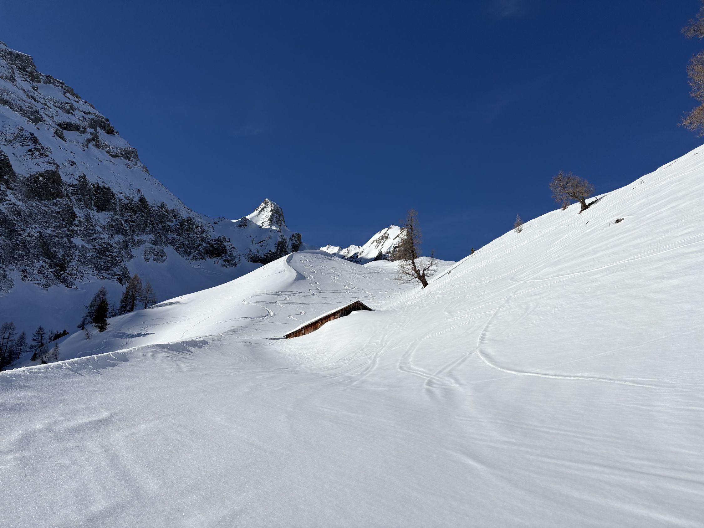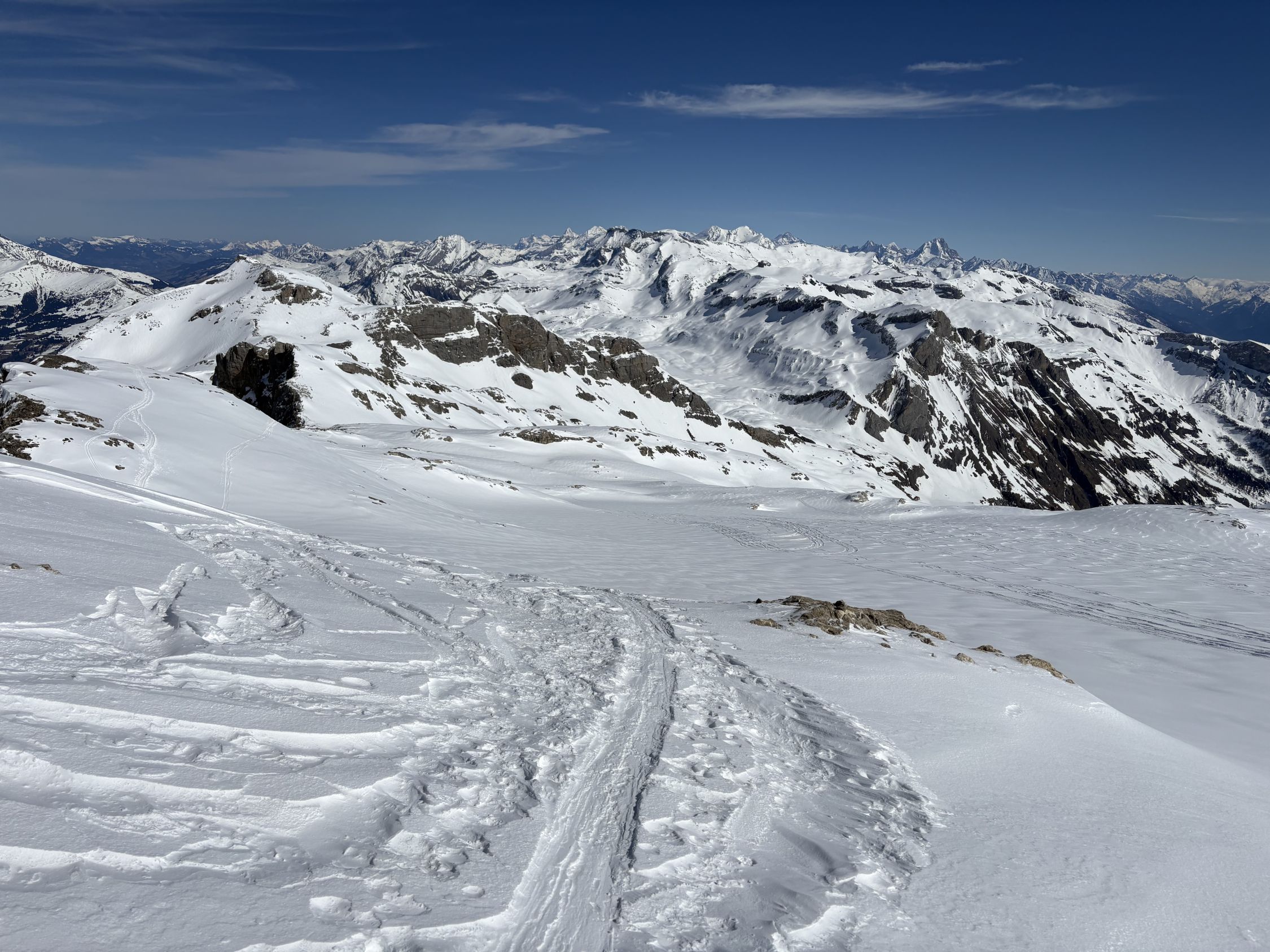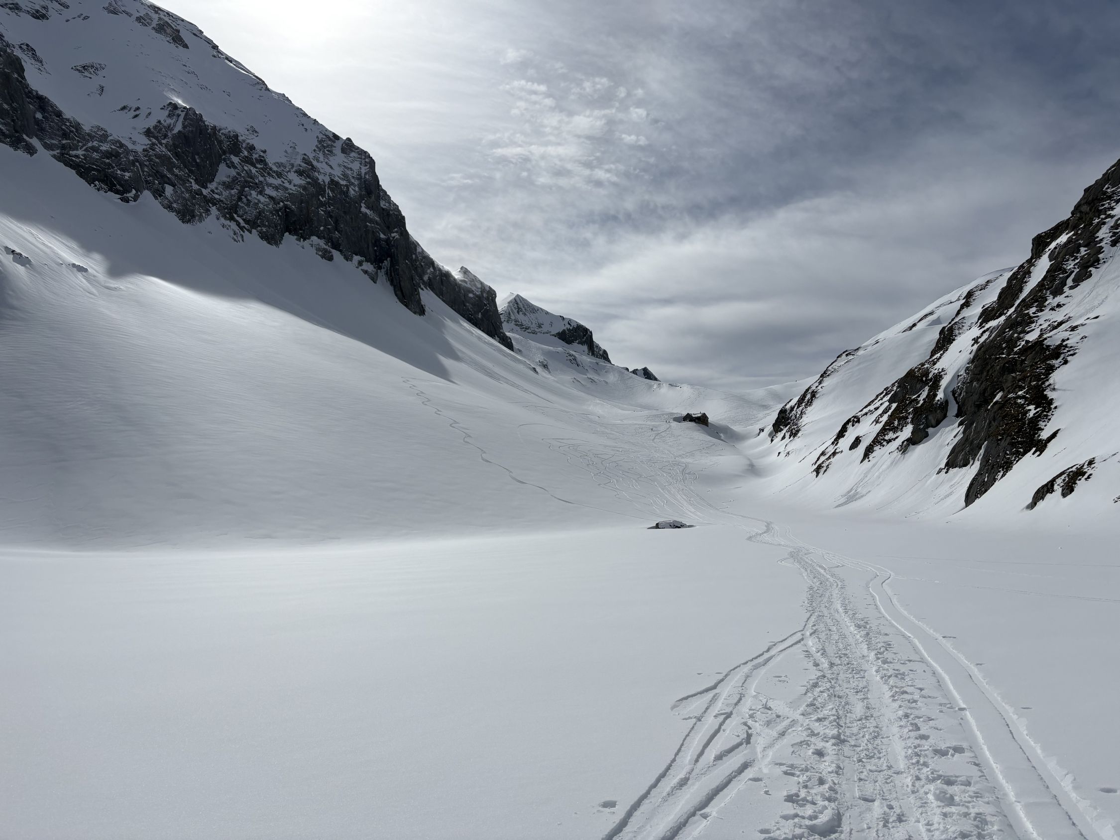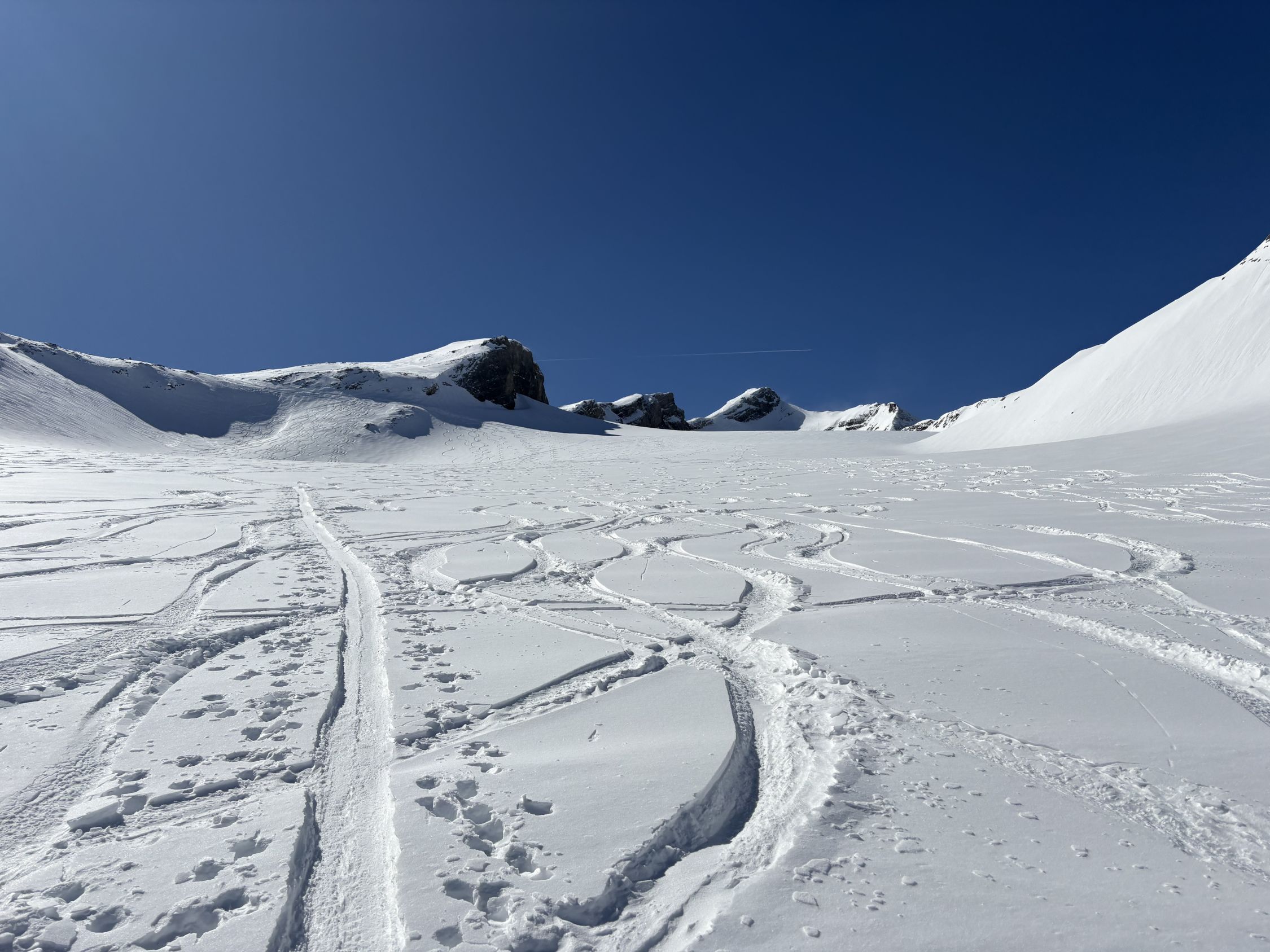 Von der Hubelmatte zur Iffigenalp geräumt, mit einigen vereisten Stellen, v.a. beim Ritzweg. Bin um 9.40 von der Iffigenalp los, unten war die Spur recht glasig, weiter oben immer mal wieder zugewindet. Schnee überwiegend pulvrig, ausser bei der Iffigenalp, wo es harschig war. Bis zum Gipfel blauer Himmel, dann zog es zu (war gegen 13.40 oben). Schnee in der Abfahrt ziemlich gut, Pulver, teils mit Winddeckel, erst unterhalb Iffigsee auch etwas Sulz. In den vergangenen Wintern bin ich meist erst im April auf das Wildhorn, da war unterhalb Iffigsee immer Bremsschnee und oberhalb Sulz.