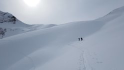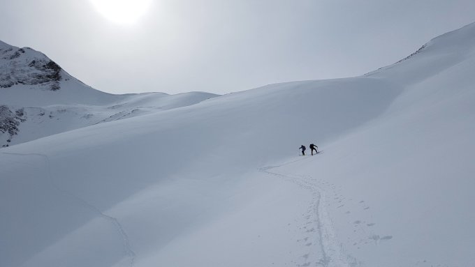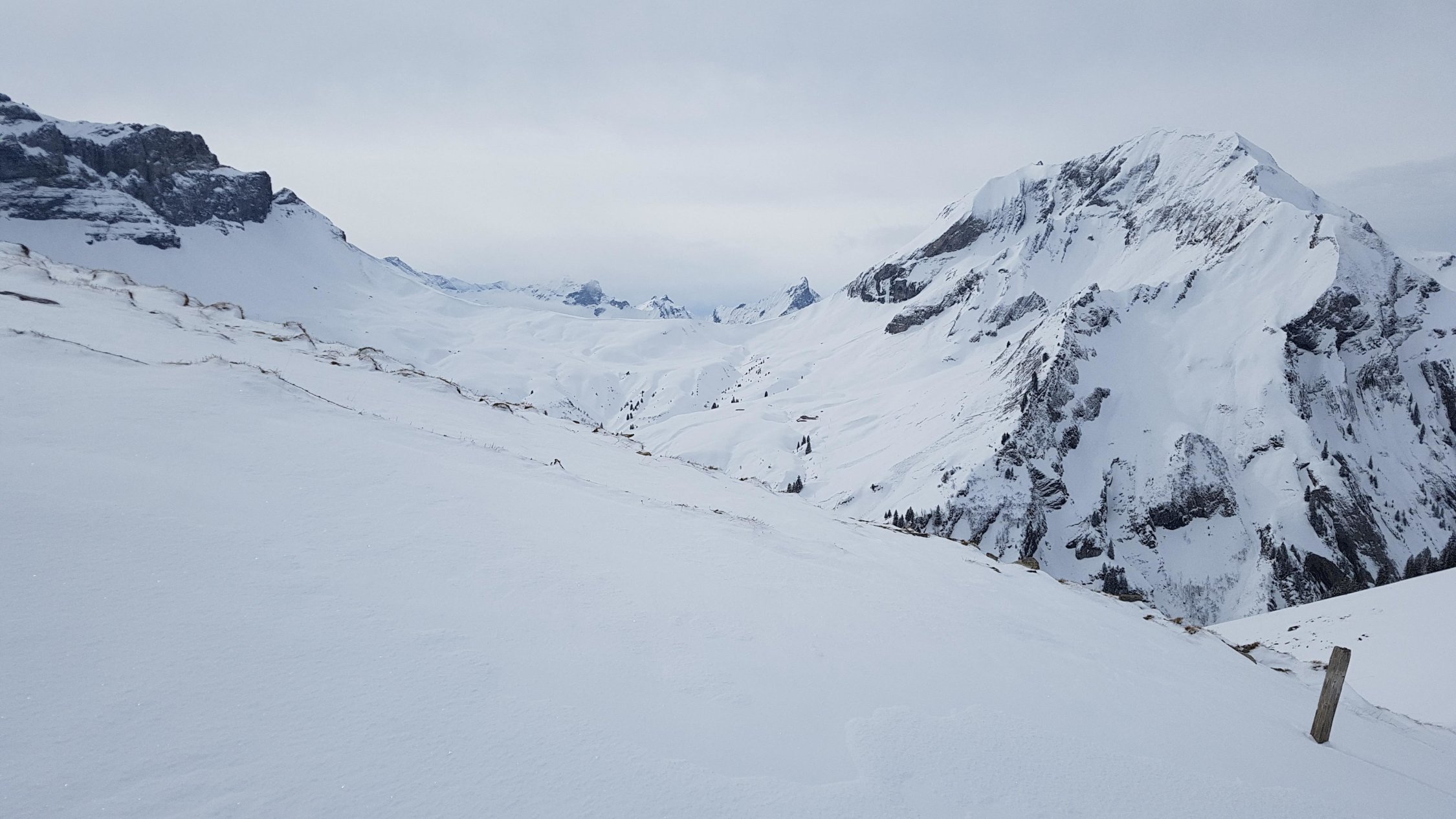 Der neue Schnee hat dem Hoger gut getan! Ab 1400m liegen ca. 15cm Pulver über der Altschneeschicht. Wenn es steiler würde als auf dem Rengghorn, wäre das Spuren mühsam. Der Gipfelhang ist grösstenteils abgeblasen und deshalb lohnt es sich, die Skis aufzusatteln. Die Nordabfahrt war toll, weiter unten im Tal zunehmend schwer.
