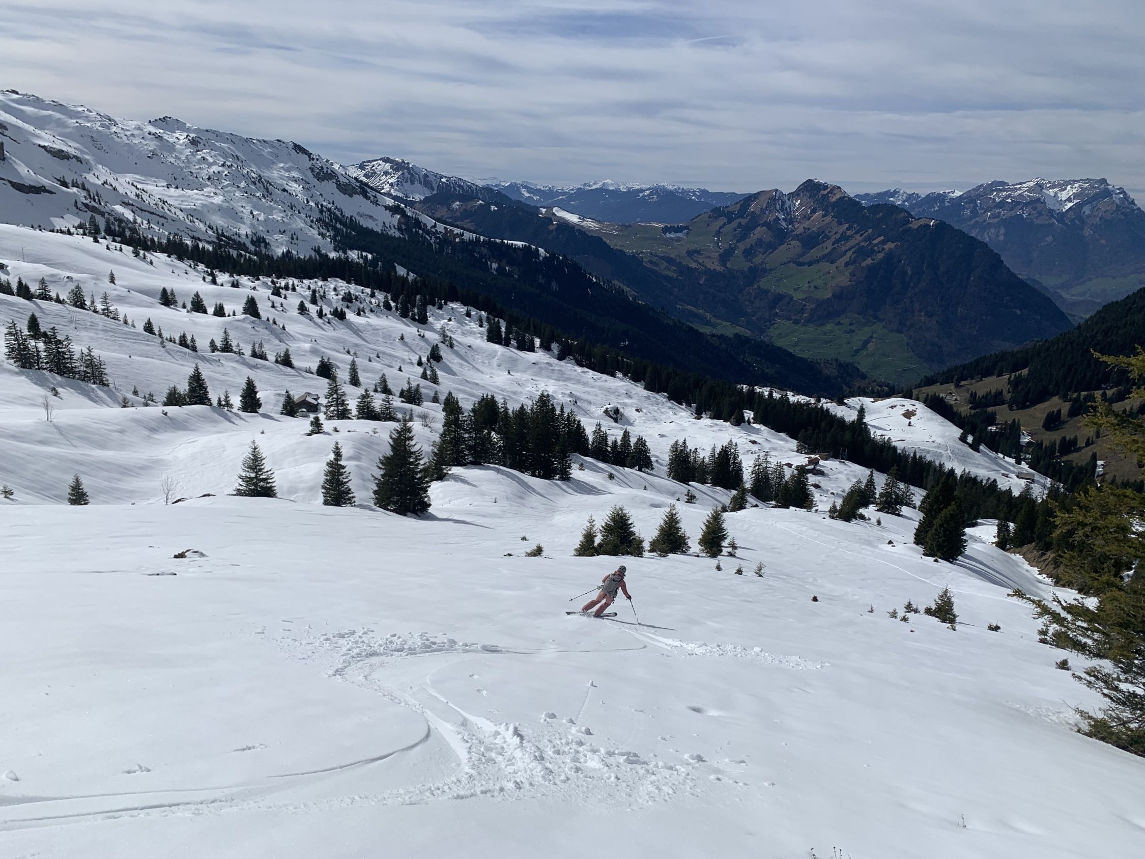 Wunderbare Pulververhältnisse oben, in der Mitte etwas Bruchharsch, unten schöner Sulz, sehr wenig Leute unterwegs