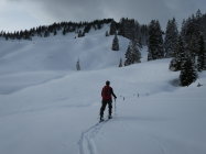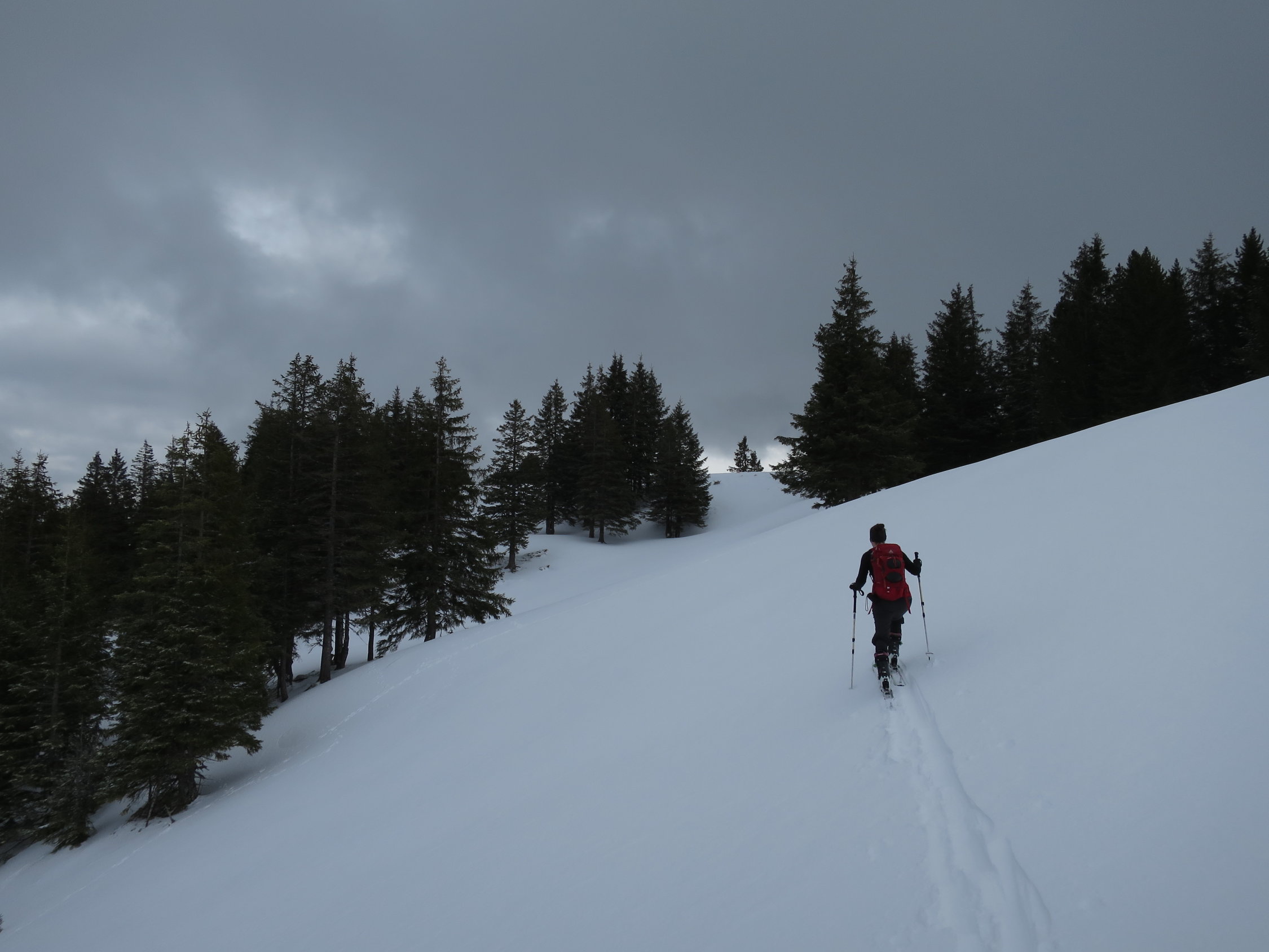 Der Aufstieg bis zum Selispitz und die Abfahrt gehen sehr gut. Unterhalb von ca. 1400m liegt weicher, alter Schnee. Höher findet man 10-15 cm kompakter Neuschnee auf meistens harter Unterlage vor.