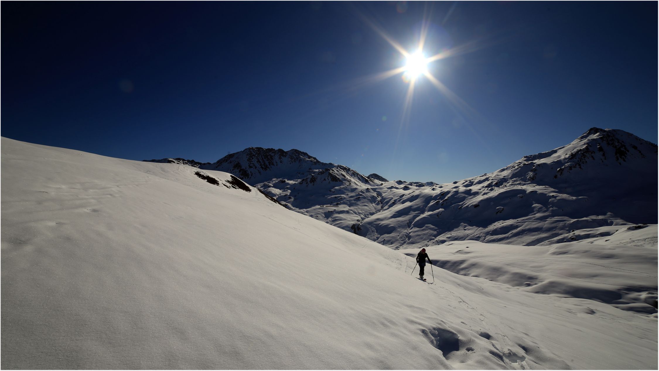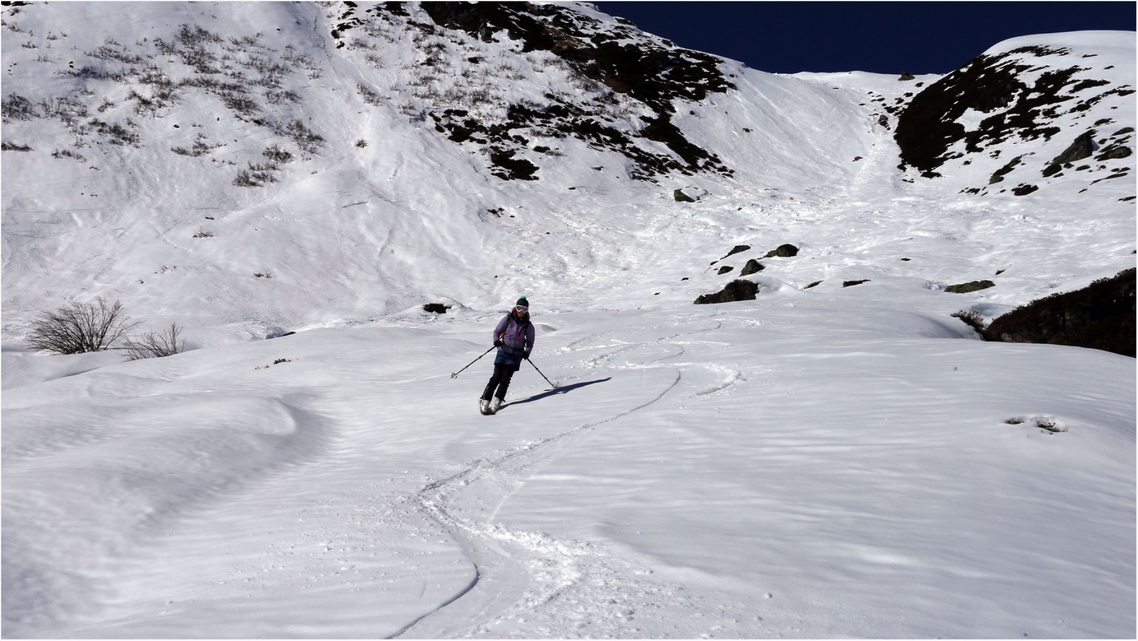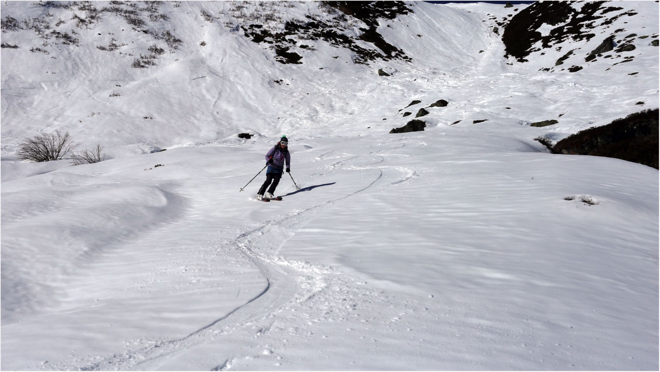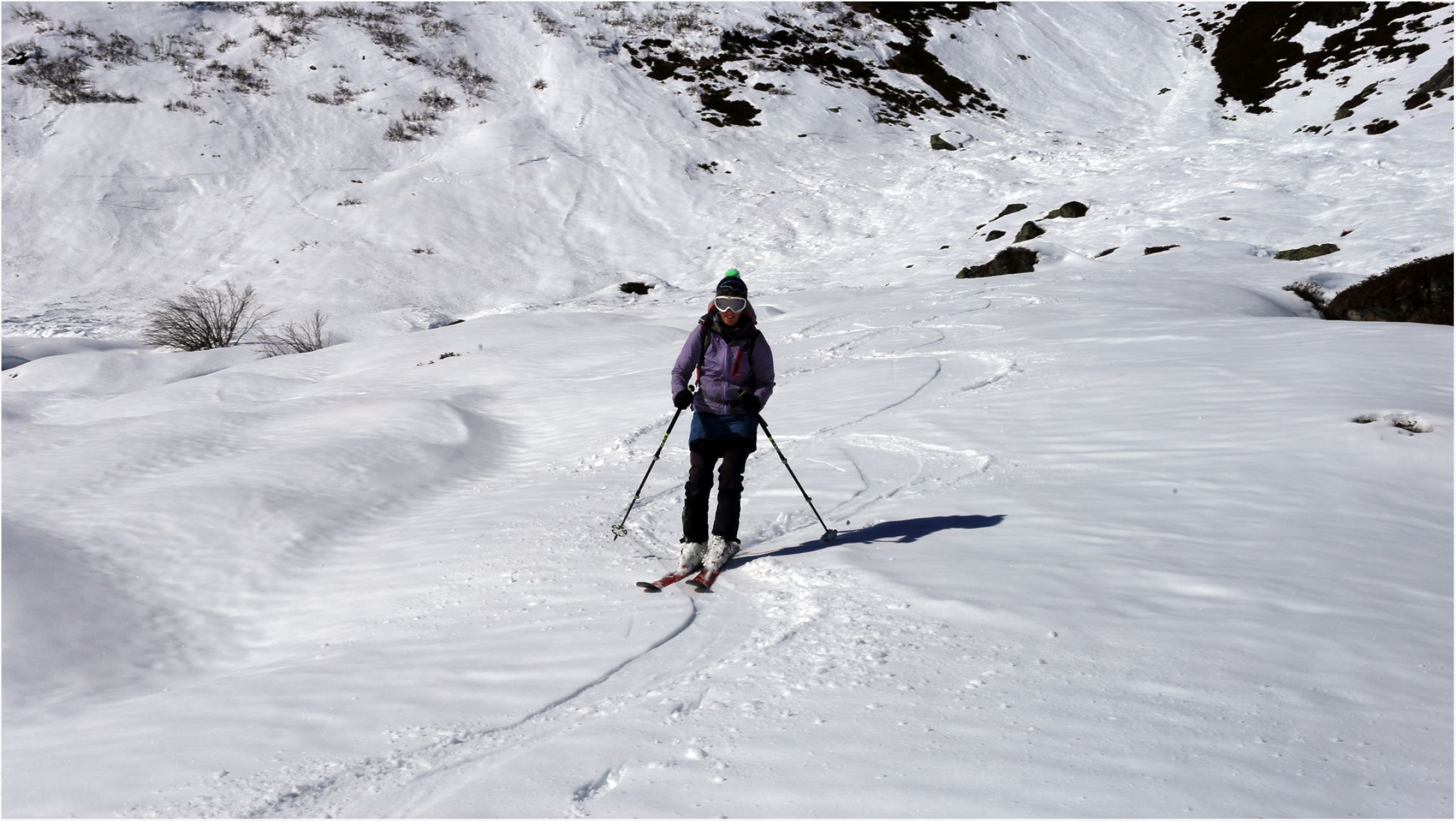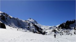 Leider ist das weite Areal hoffnungslos zerfahren, der wenige Neuschnee bewirkte nur heftiges Anstollen der Felle.