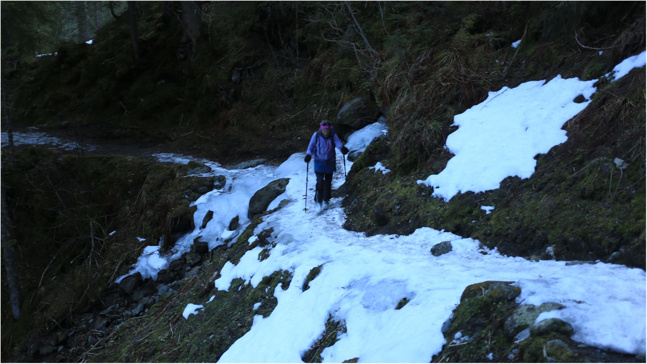 Schnee wird unterhalb der Hütte rasant weniger. Als Tagestour lohnt es sich bald nicht mehr.