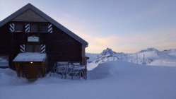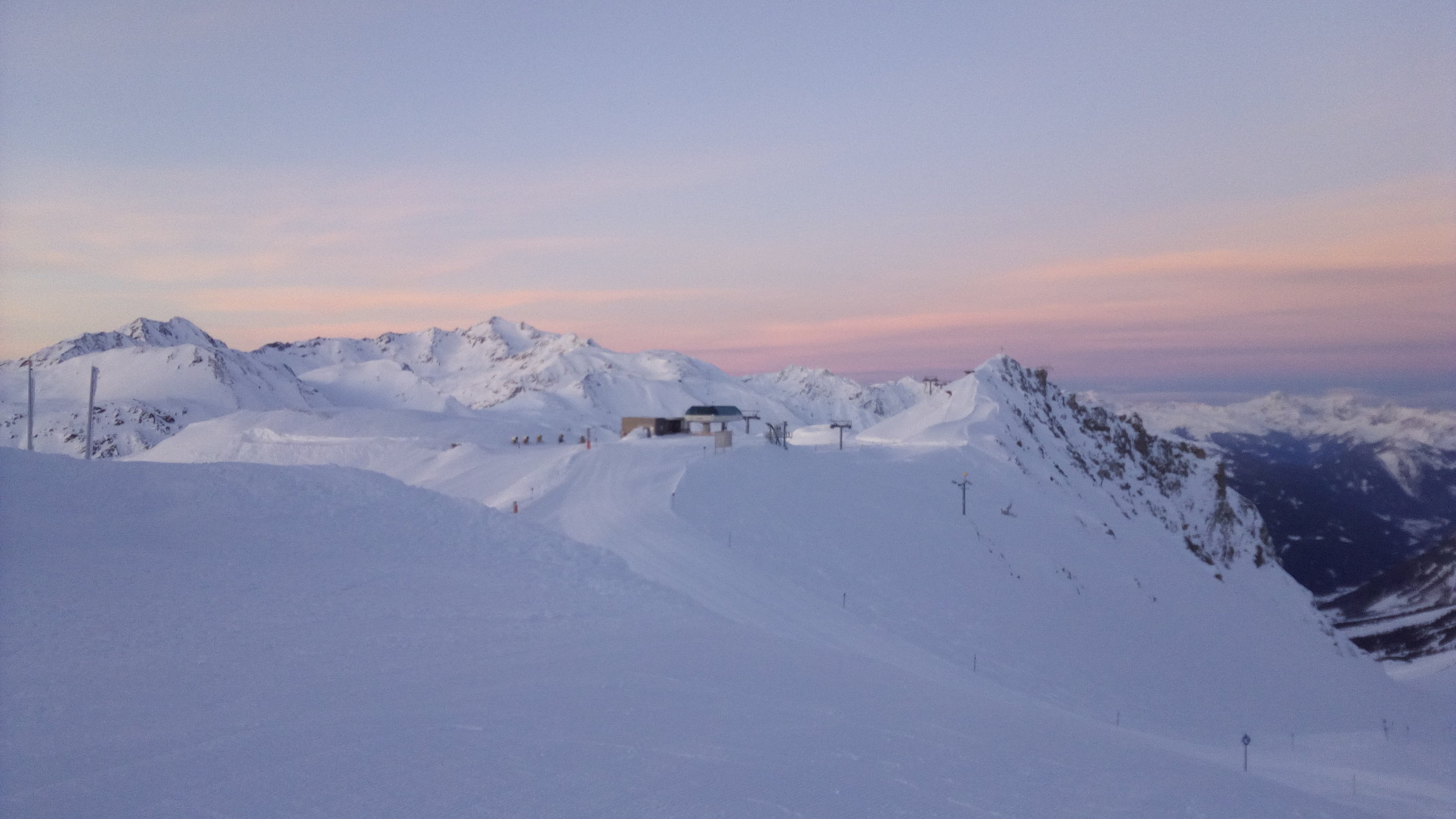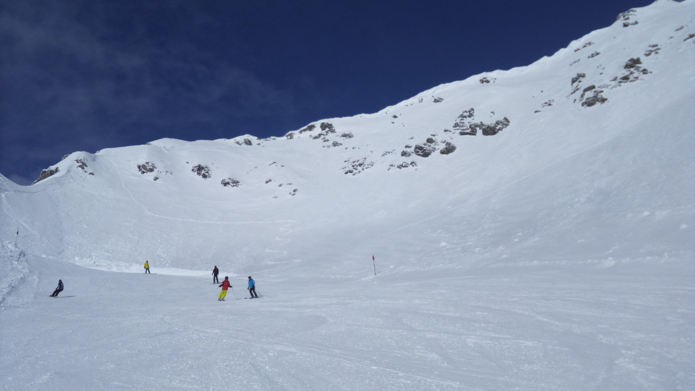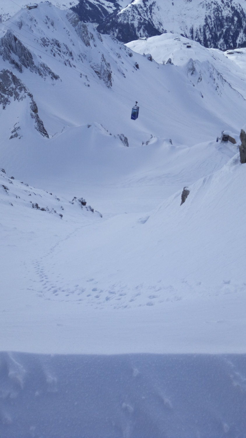 Einige Sterne,teilweise Sonne, kaum Wind.Perfekte Piste.Wechselhafter Schnee in Gipfelfallrinne.