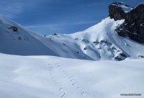Zufahrt bis Sali trocken. Im Lawinenzug bei Schwandboden hat's zirka 3 m hohe Schneemauern neben der Strasse. Da war mal was los... Viele Parkplätze sind freigeschaufelt, danke! Doch heute waren die meisten um 8 Uhr schon besetzt.