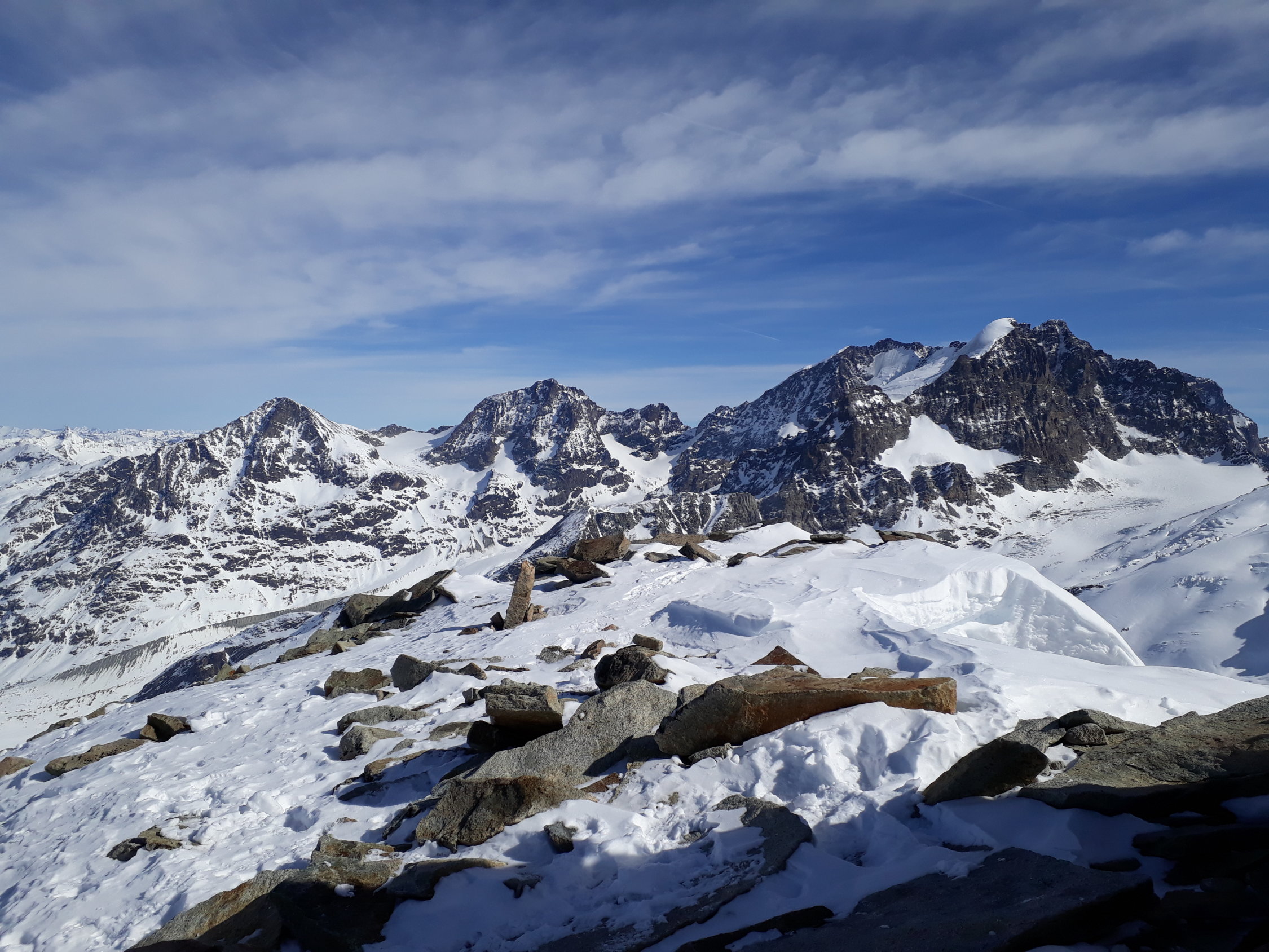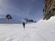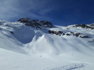 Die Gletscher sind sehr gut eingeschneit. Der SW-Grat ist zum grossen Teil schneefrei, trocken und sehr gut zu gehen. In der Abfahrt direkt zur Chamanna Coaz tolle Pulverhänge.