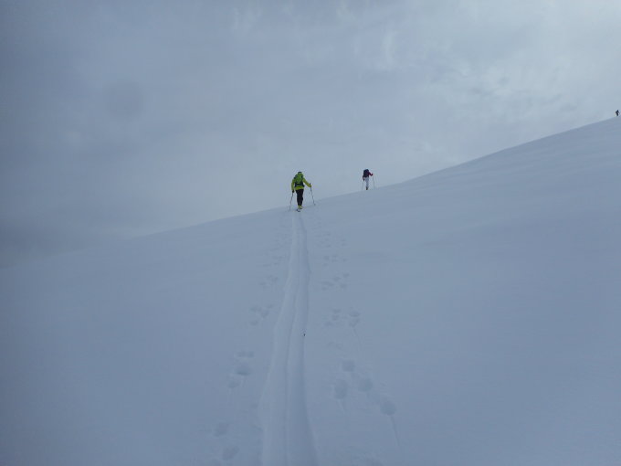 Nach der Abfahrt vom Lueglespitz stiegen wir auf den Gestelegrat. Die Abfahrt erfolgte über die oben beschriebene Aufstiegsroute auf den Gestelegrat. D.h. also wieder retour zum Meniggrund.
