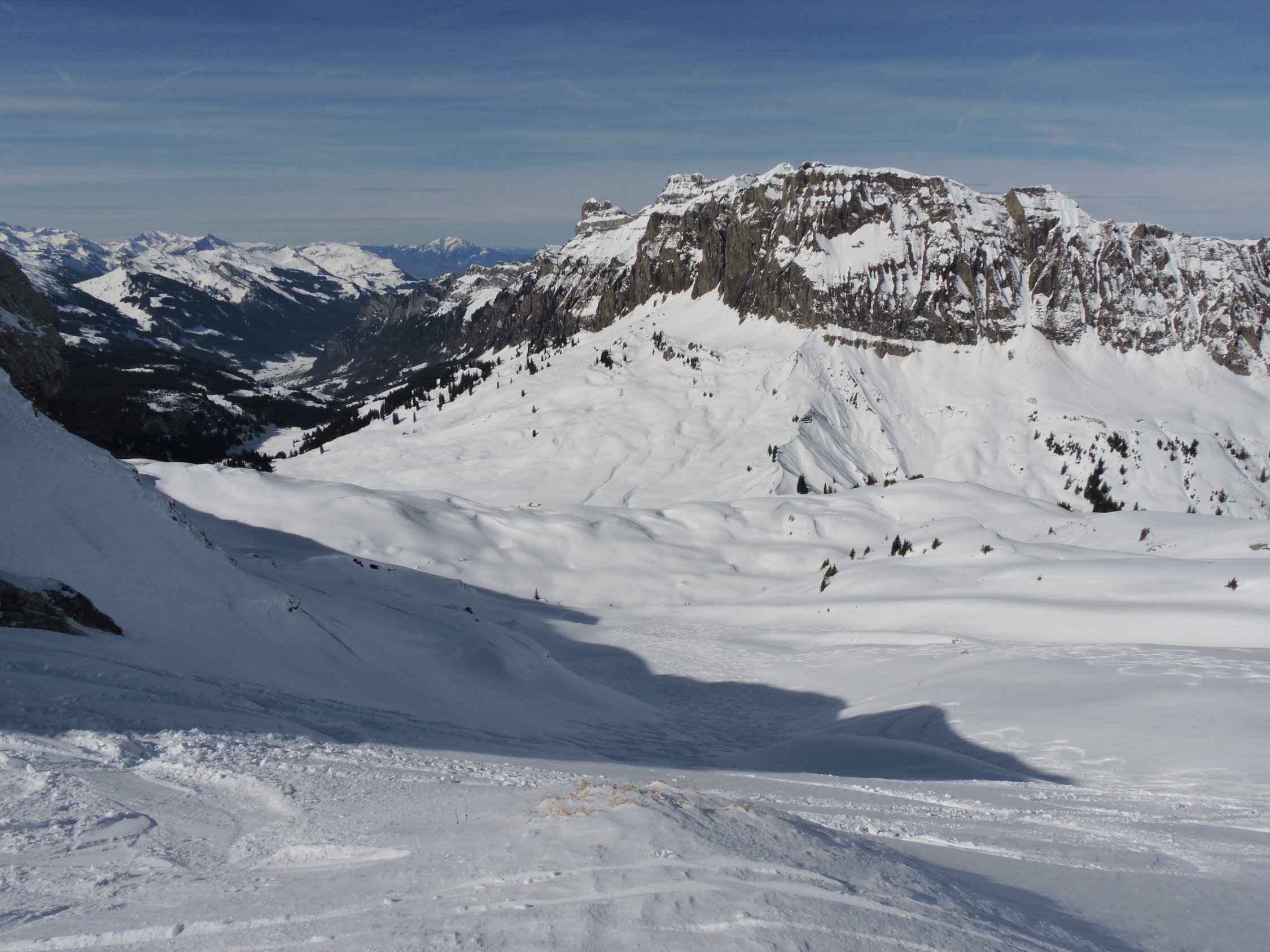 Abfahrt bis Butzen 1777 schöne Pulverschwünge, durch den Wald Bruchharsch ,auf der Strasse im Schatten gefroren an der Sonne Nassschnee zum Auto zurück.