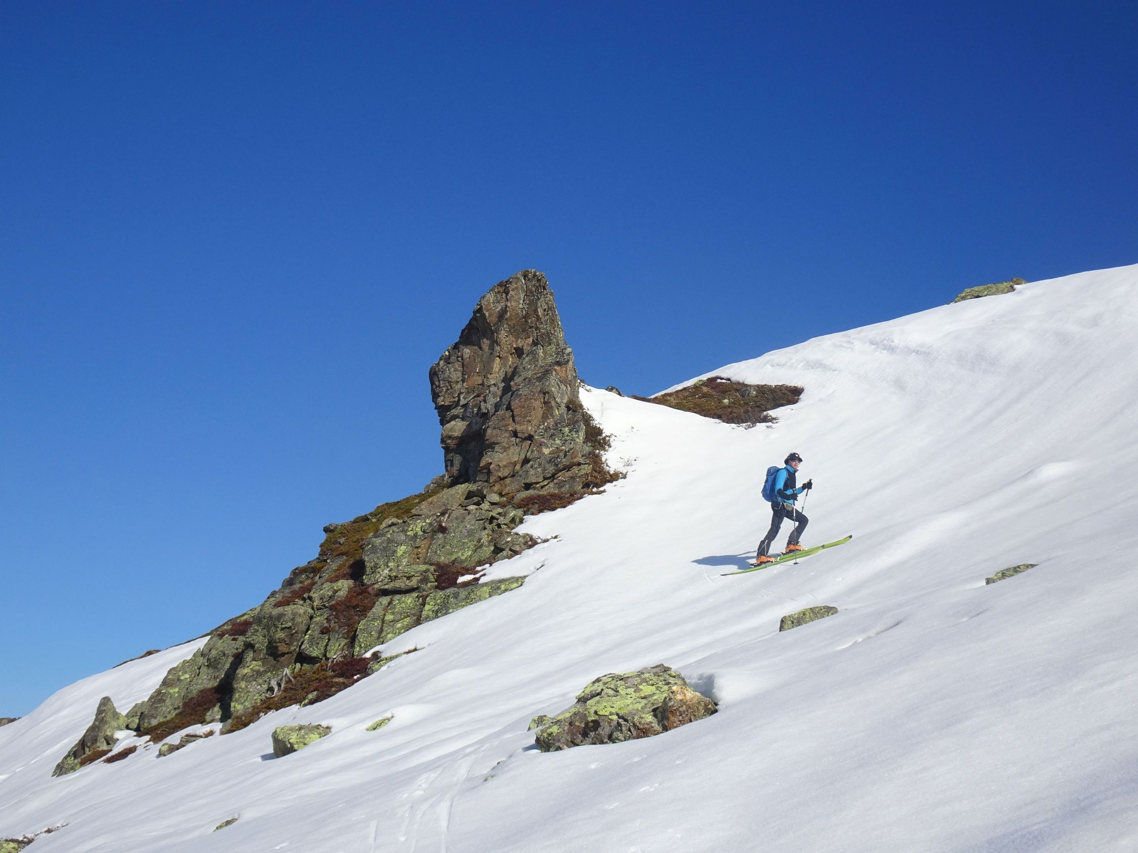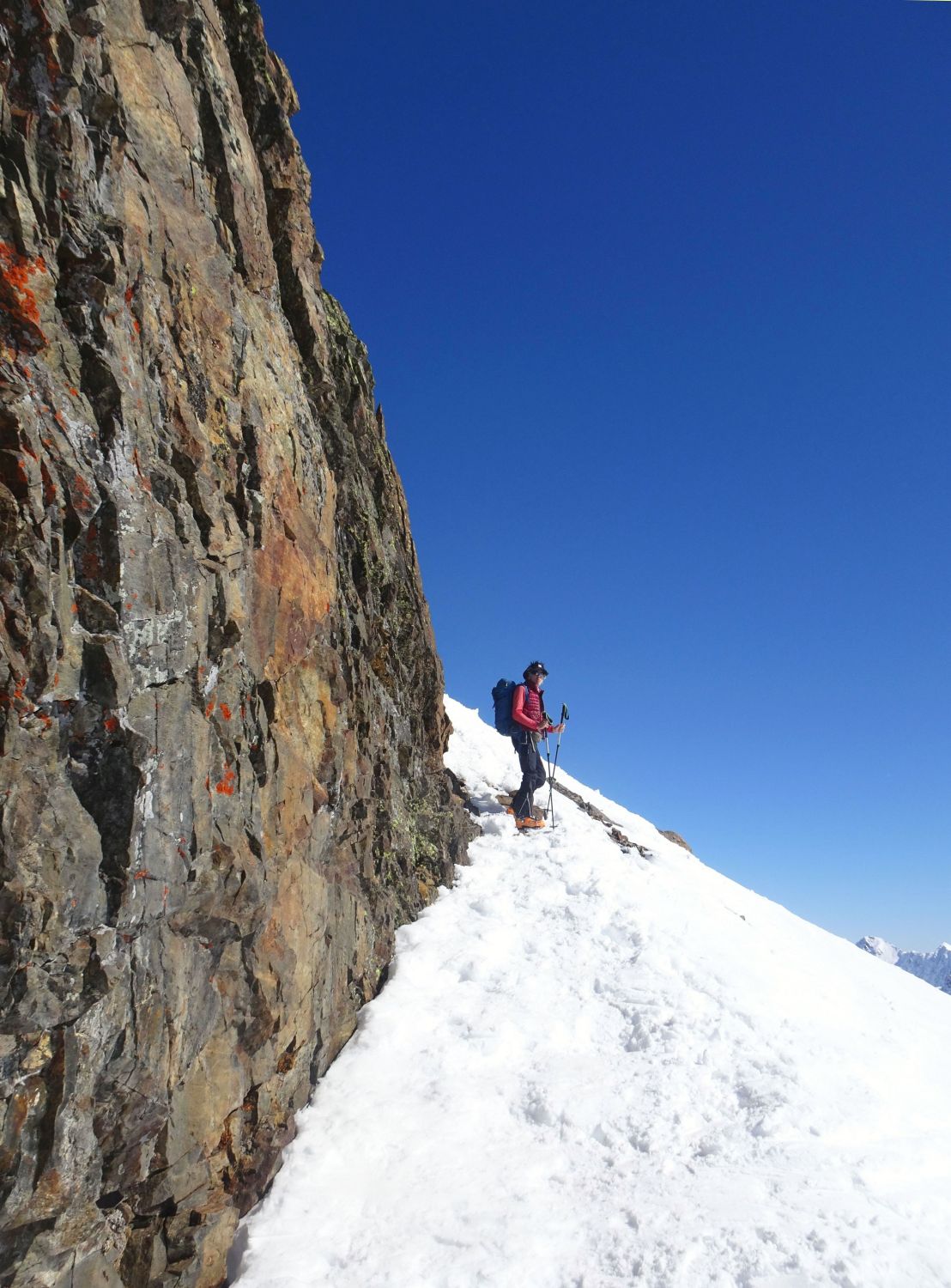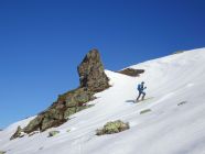 Noch länger machbar, eine Ladung Neuschnee gerade für die unteren Hänge schadet sicher nicht. Bei harten Verhältnissen im Gipfelaufstieg ggf. Steigeisen hilfreich. Tour braucht sichere Verhältnisse. Prächtiger Aussichtsberg.