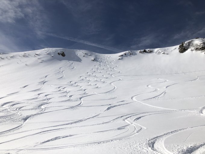 Nordseitig wunderbarer Pulverschnee.