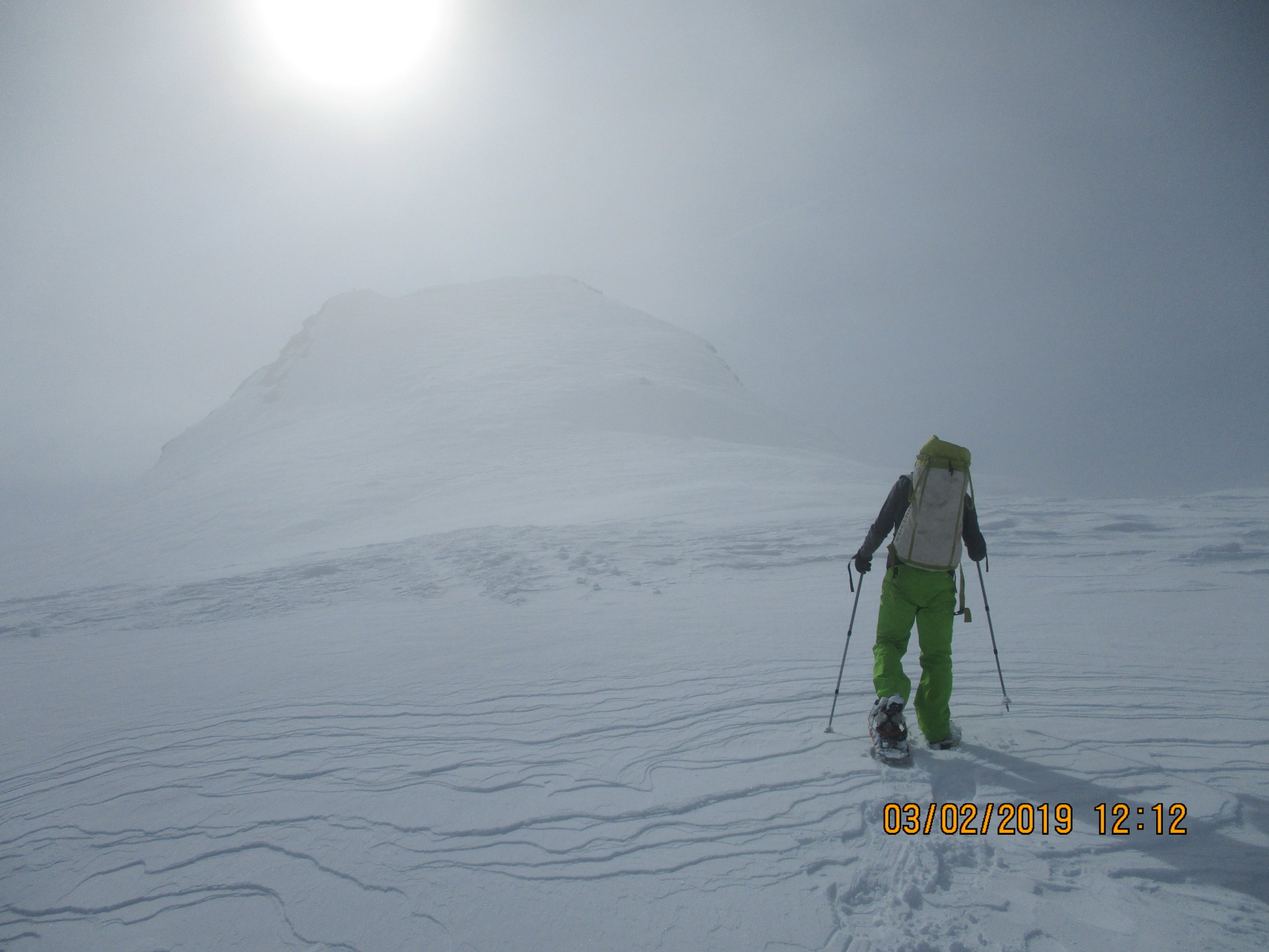 Der anfangs garstige Wind mäßigte sich glücklicherweise im Laufe unseres Anstieges, ebenso die immer wieder durch Nebelschwaden beeinträchtigten Sichtverhältnisse. Als wir schließlich den Gipfel erreichten, konnten wir die herrliche Sicht windstill unter einer wärmenden Sonne genießen.