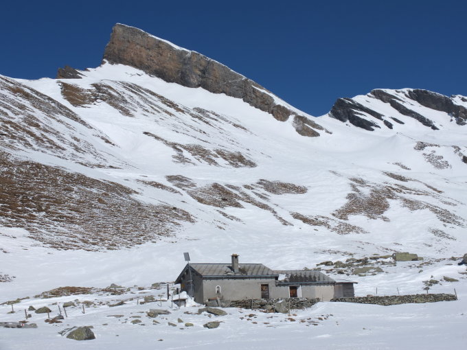 oberhalb von San Bernardino sind kurze Stellen schneefrei, ansonsten sehr gute Verhältnisse auf der ganzen Tour. Im Gipfelhang liegt auf einer sehr harten Altschneedecke 3 cm Pulver, wunderschön zu fahren. Der Fussaufstieg auf den Gipfel ist auch gut zu machen, Steigeisen sind hier nicht schlecht, zur Not geht's aber auch ohne. Auch für die umliegenden Skitourenziele zeigt der Daumen nach oben!