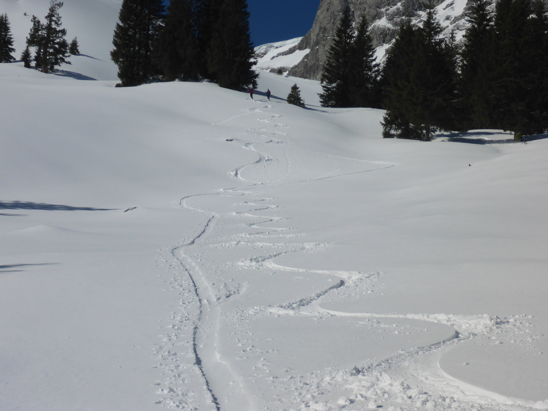 Bis zur Alphütte bei Pt. 1792 sehr schöne Verhältnisse auch für die Abfahrt.