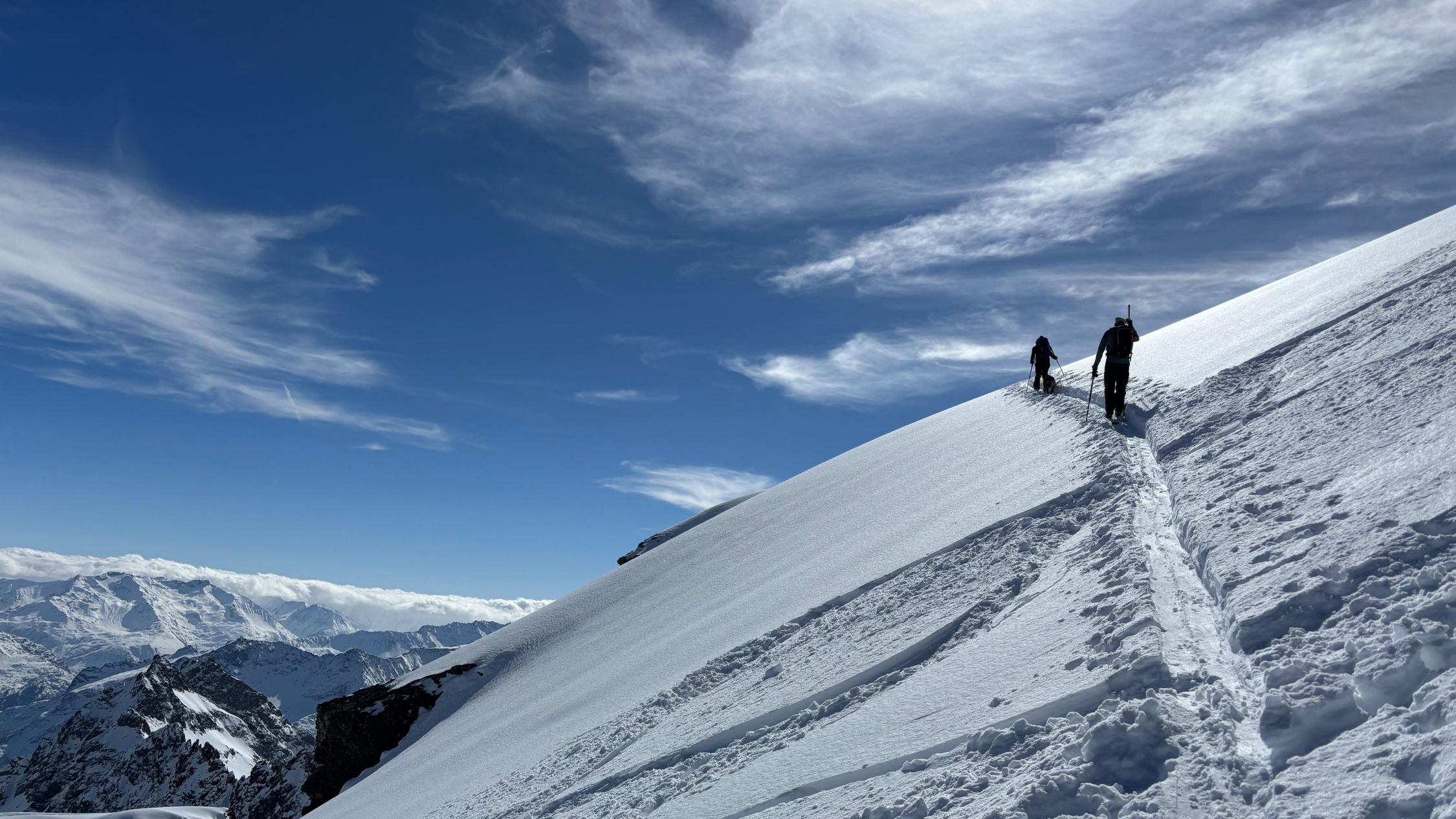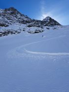 Aufstieg griffig, im steilen Gelände ohne Steigeisen machbar.